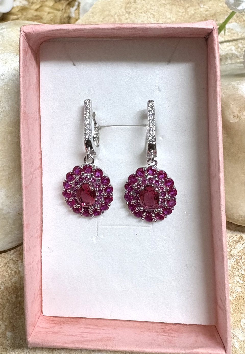 עגילי כסף 925 עם אבני ספינל בגוון רובי
