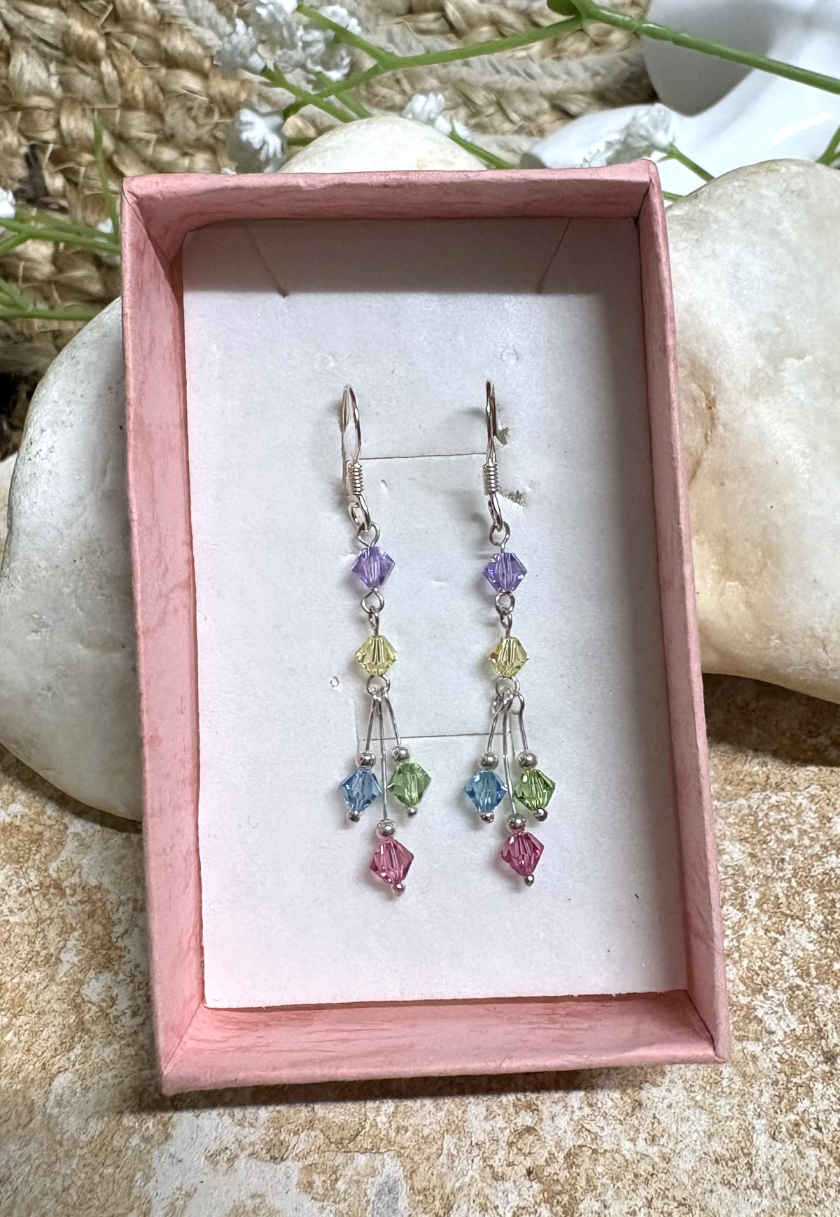 עגילי כסף 925 בשילוב חרוזי סברובסקי צבעוניות .