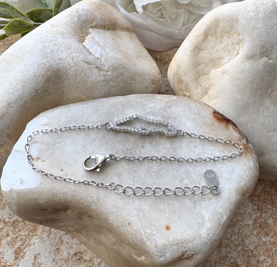 צמיד כסף 925 ליד תליון מפת ארץ ישראל משובץ בזרקונים.