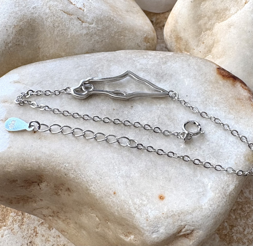 צמיד כסף 925 ליד תליון מפת ארץ ישראל.
