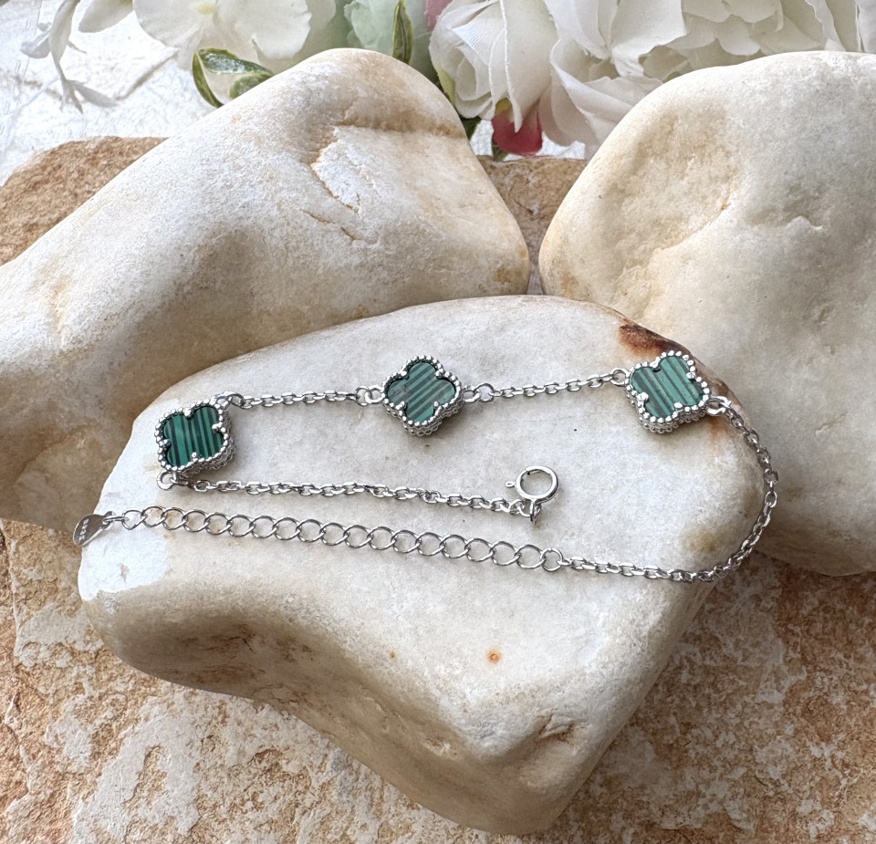 צמיד כסף 925 ליד דגם ואן קליף, תלתן ירוק. צמיד אלגנטי.