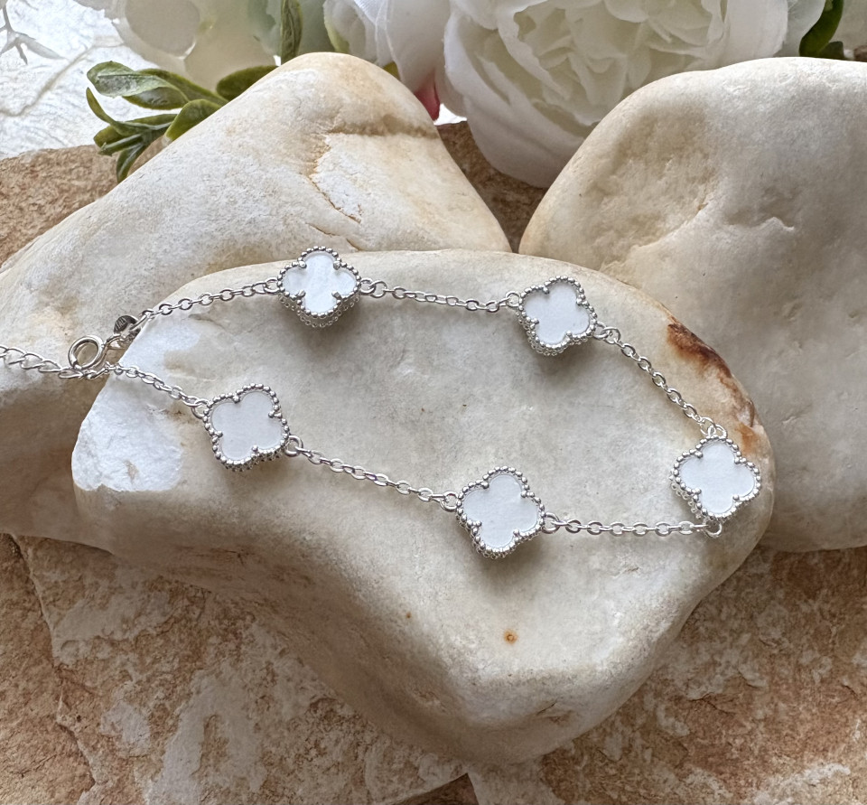 צמיד כסף 925 תליון תלתן  דגם ואן קליף צבע לבן.