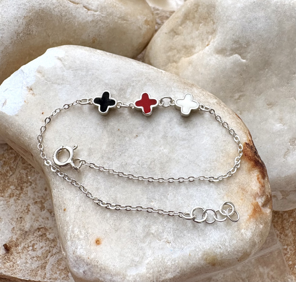 צמיד כסף 925 תליון תלתן ואן קליף (שחור, לבן ואדום)