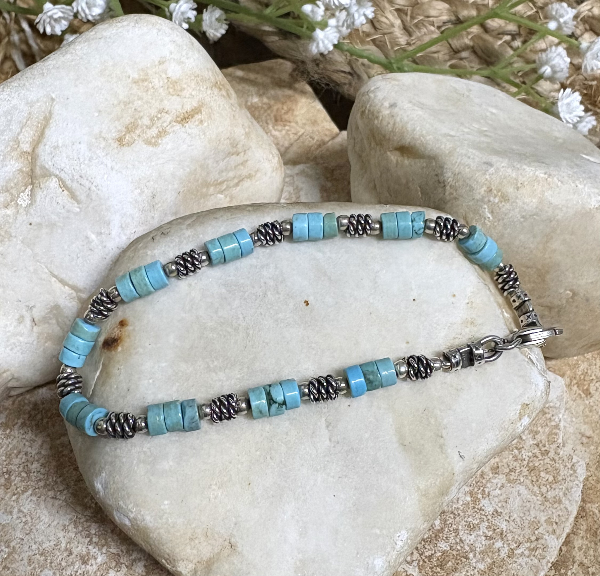 צמיד כסף 925 עם אלמנטים מכסף ואבני טורקיז.