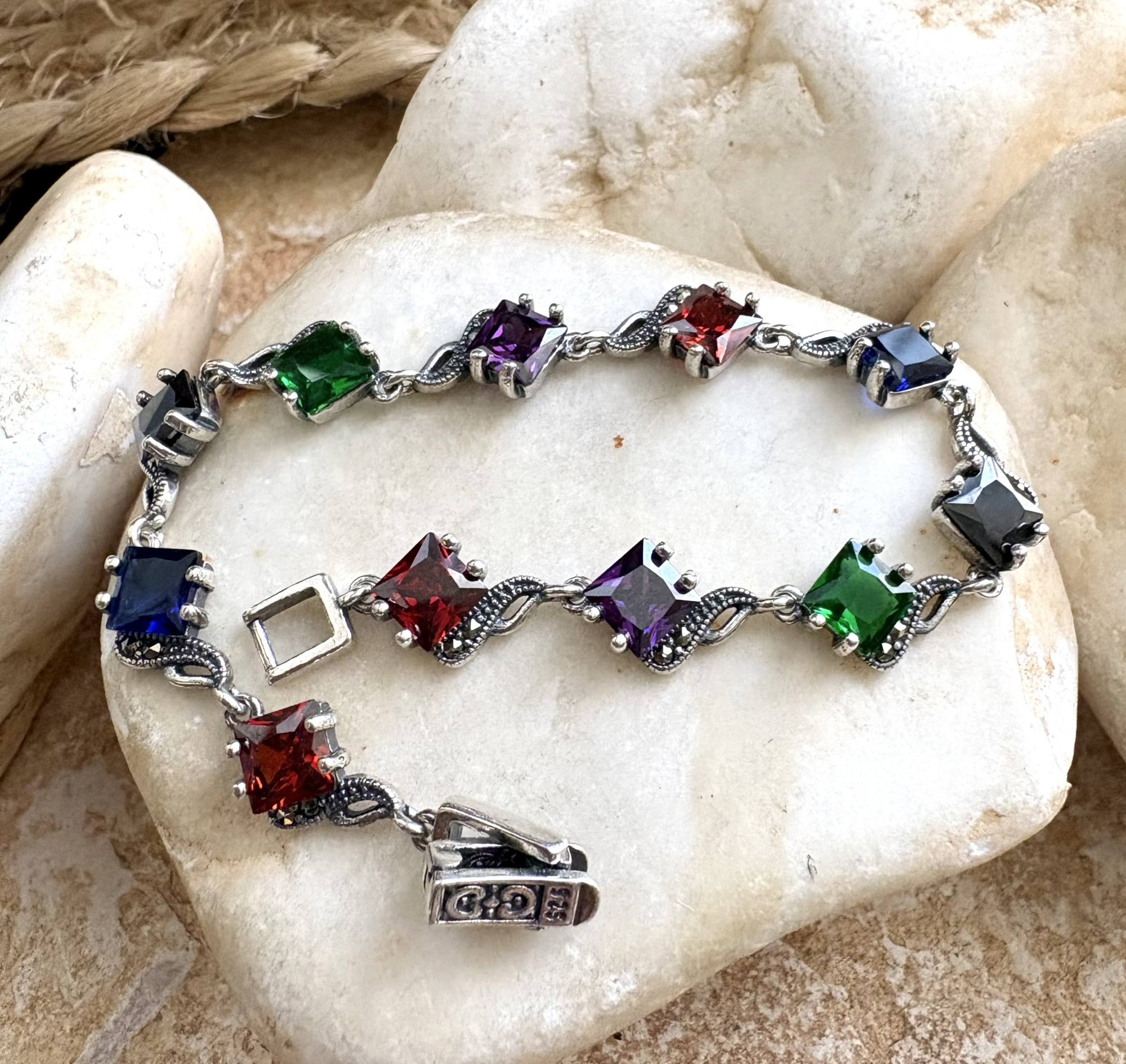 צמיד כסף 925 בשילוב קריסטלים צבעוניים
