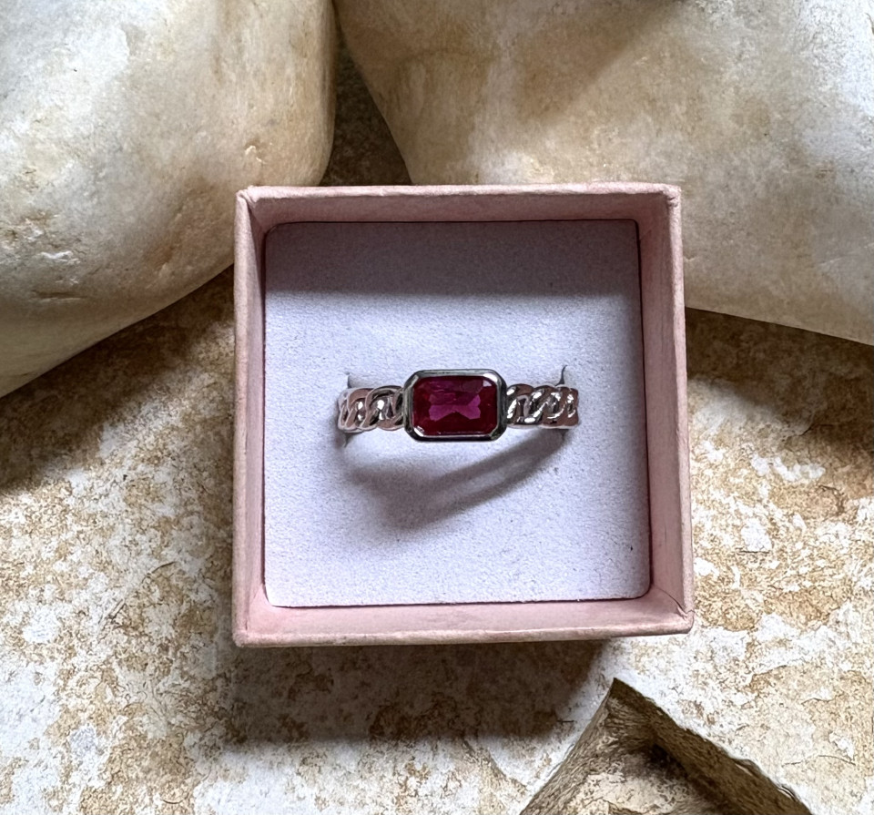 טבעת כסף 925 דגם גורמט בשיבוץ אבן רובי.