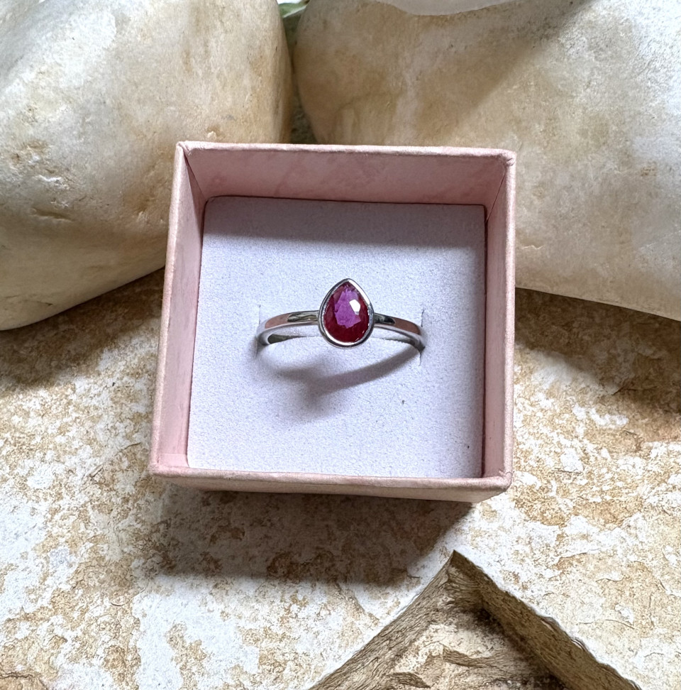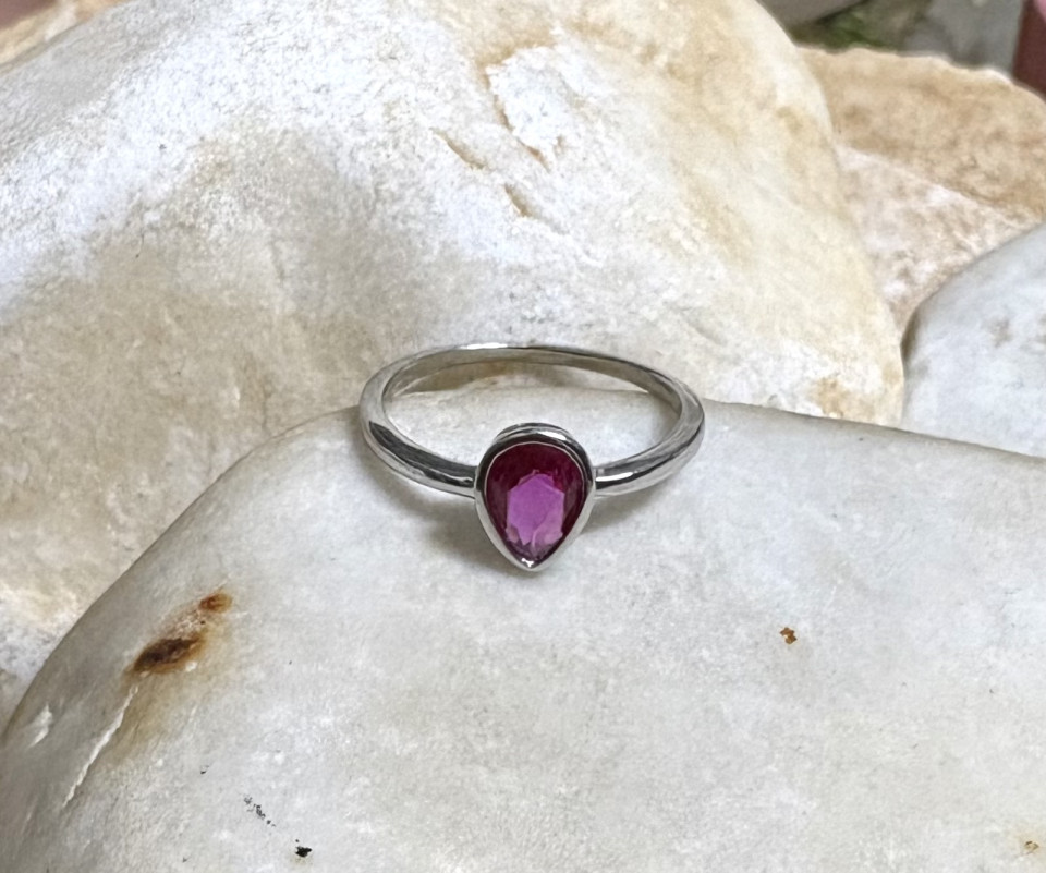 טבעת כסף 925 בשיבוץ קריסטל בורדו בצורת טיפה.