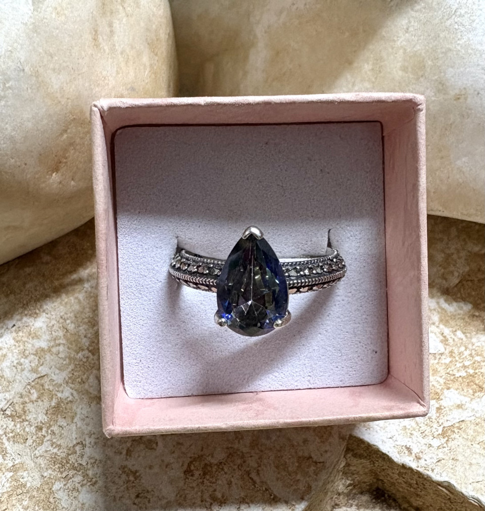 טבעת כסף 925 מעוטרת משובצת באבן טנזנייט