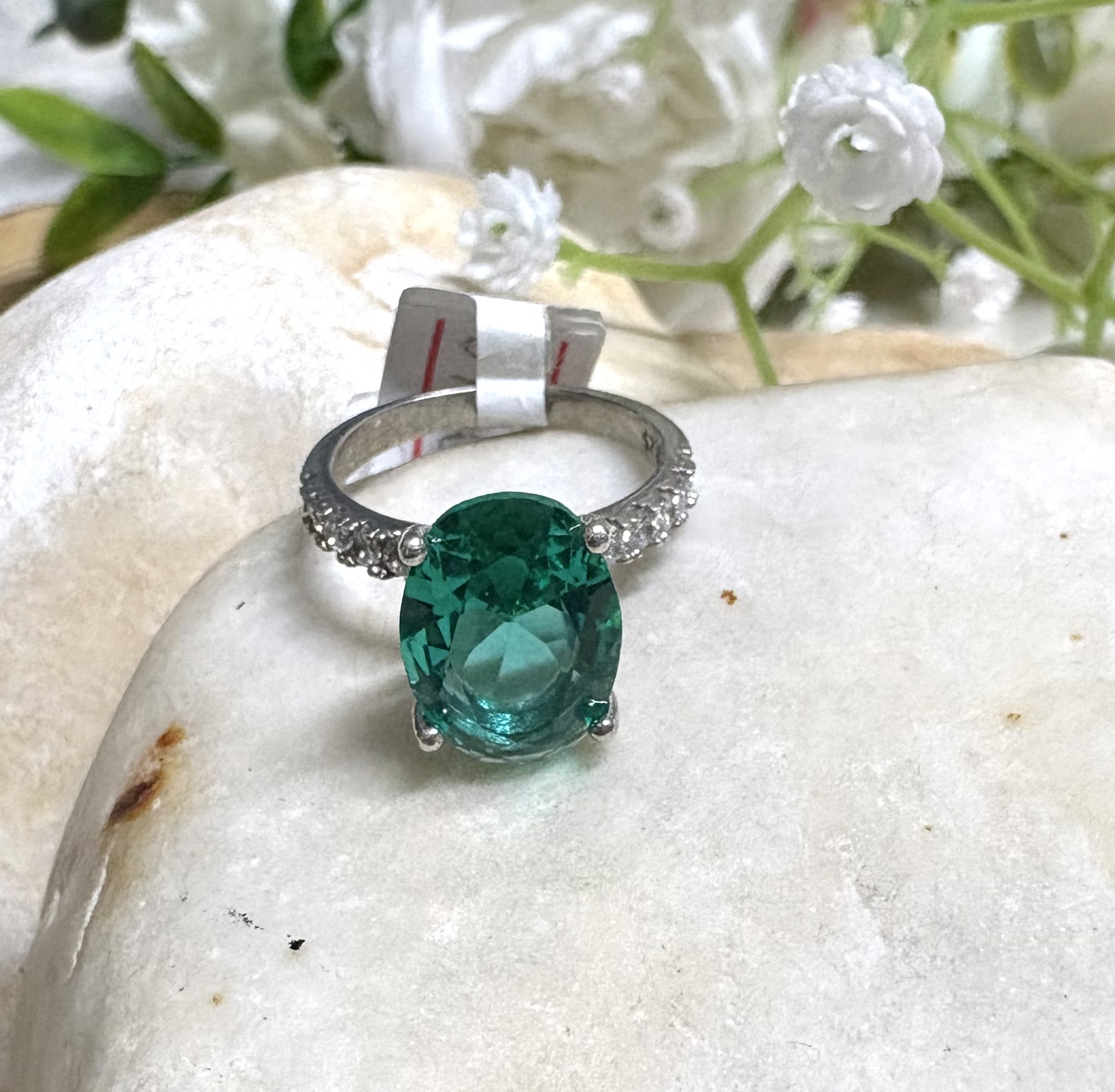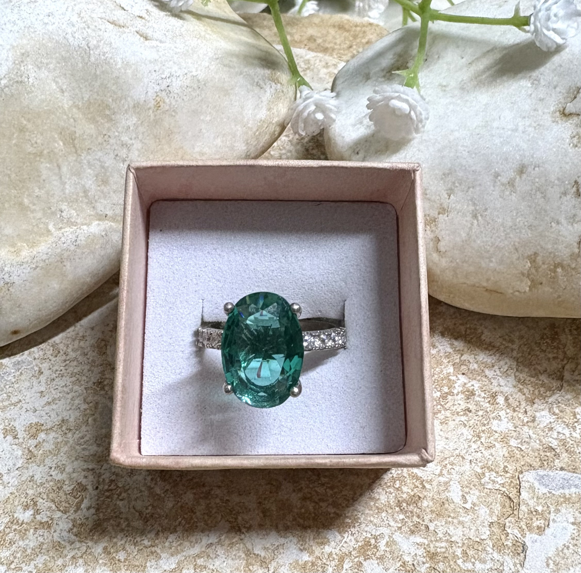 טבעת כסף בשיבוץ אבן זרקון ירוק-כחול וזרקונים