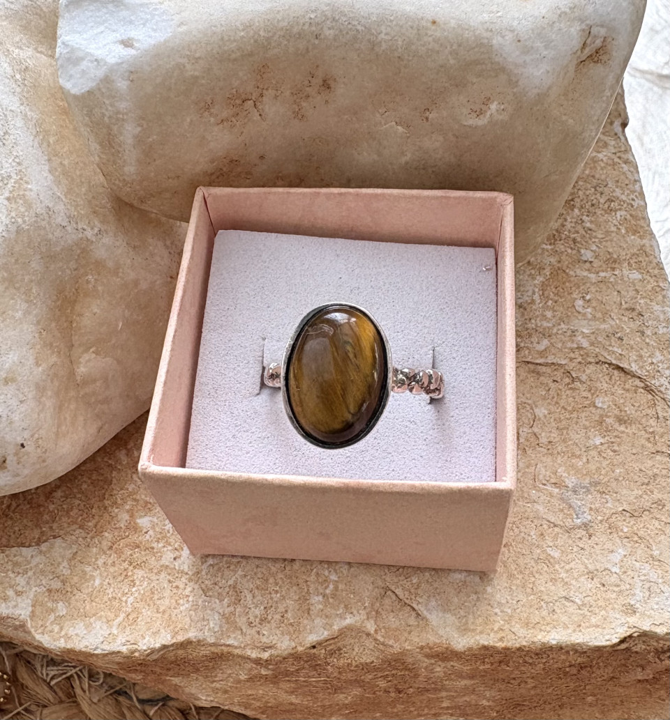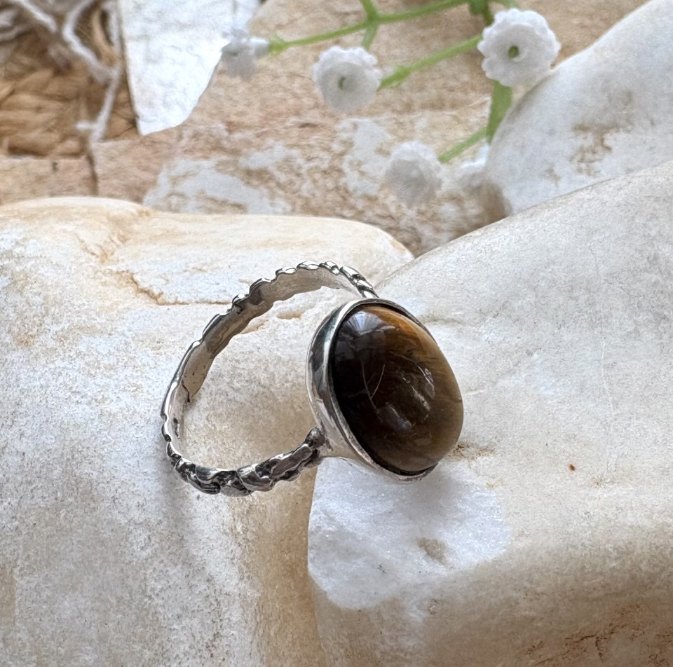 טבעת כסף 925 בשיבוץ אבן עין הנמר.