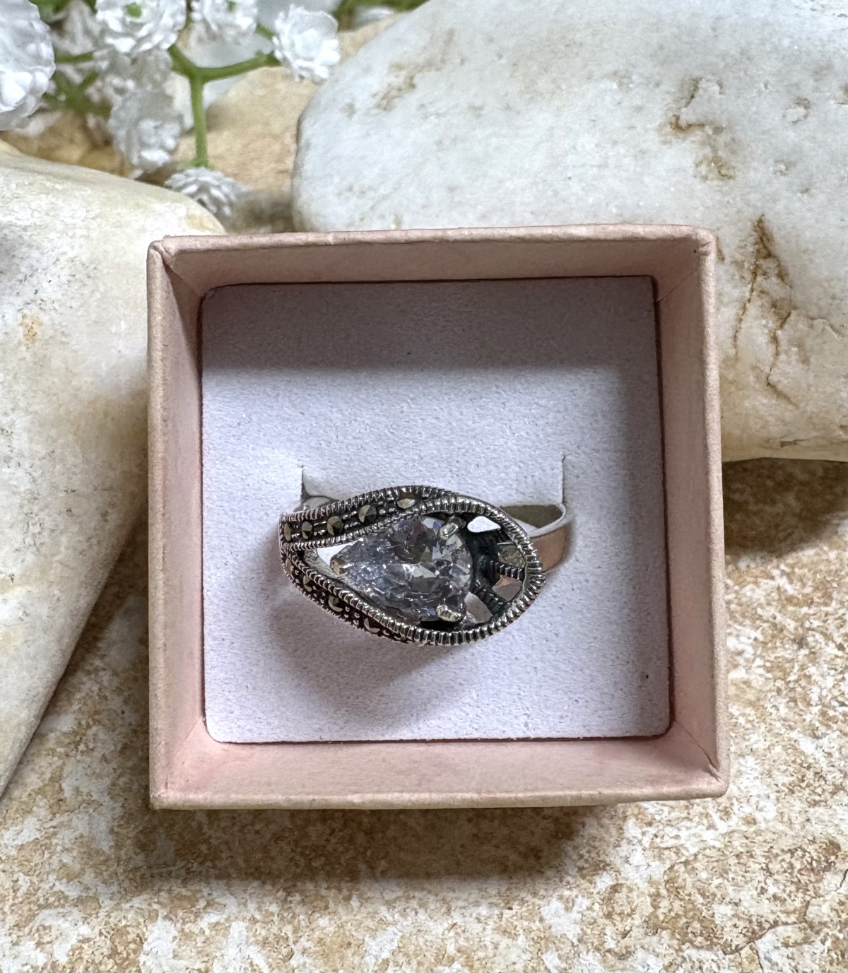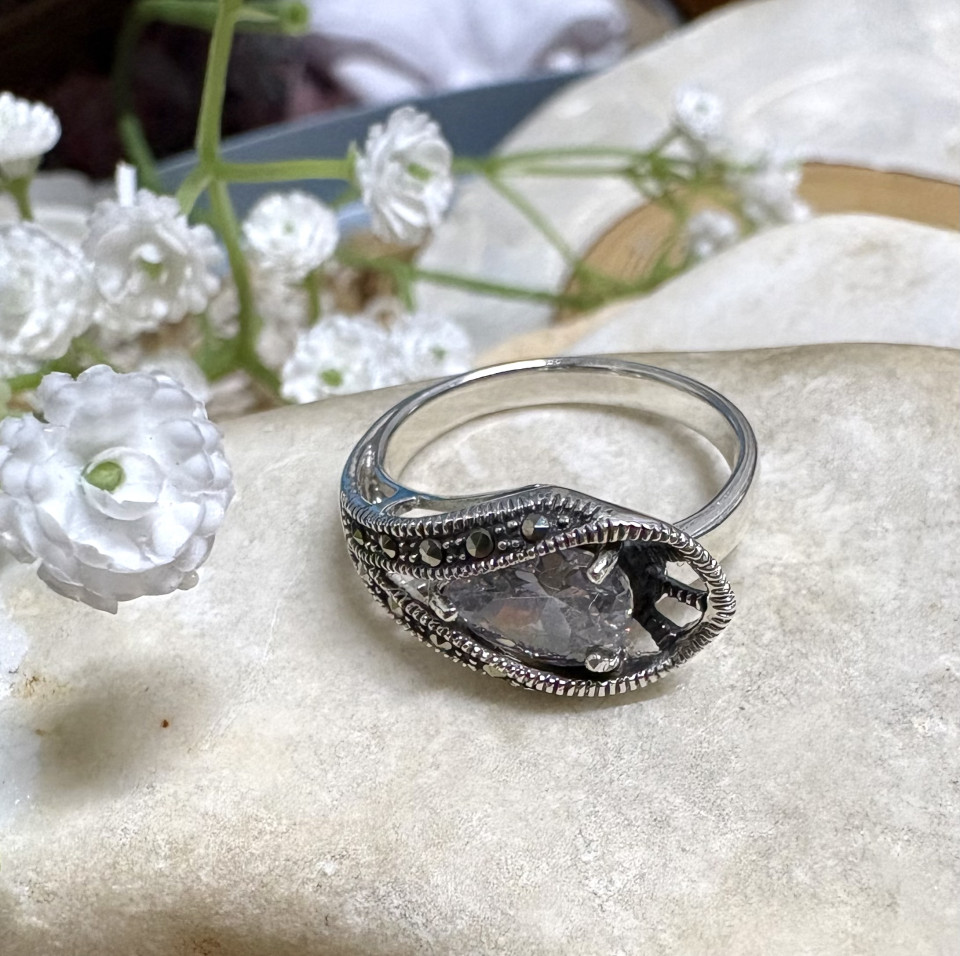 טבעת כסף 925 משובצת באבן סברובסקי ומרקיזטים