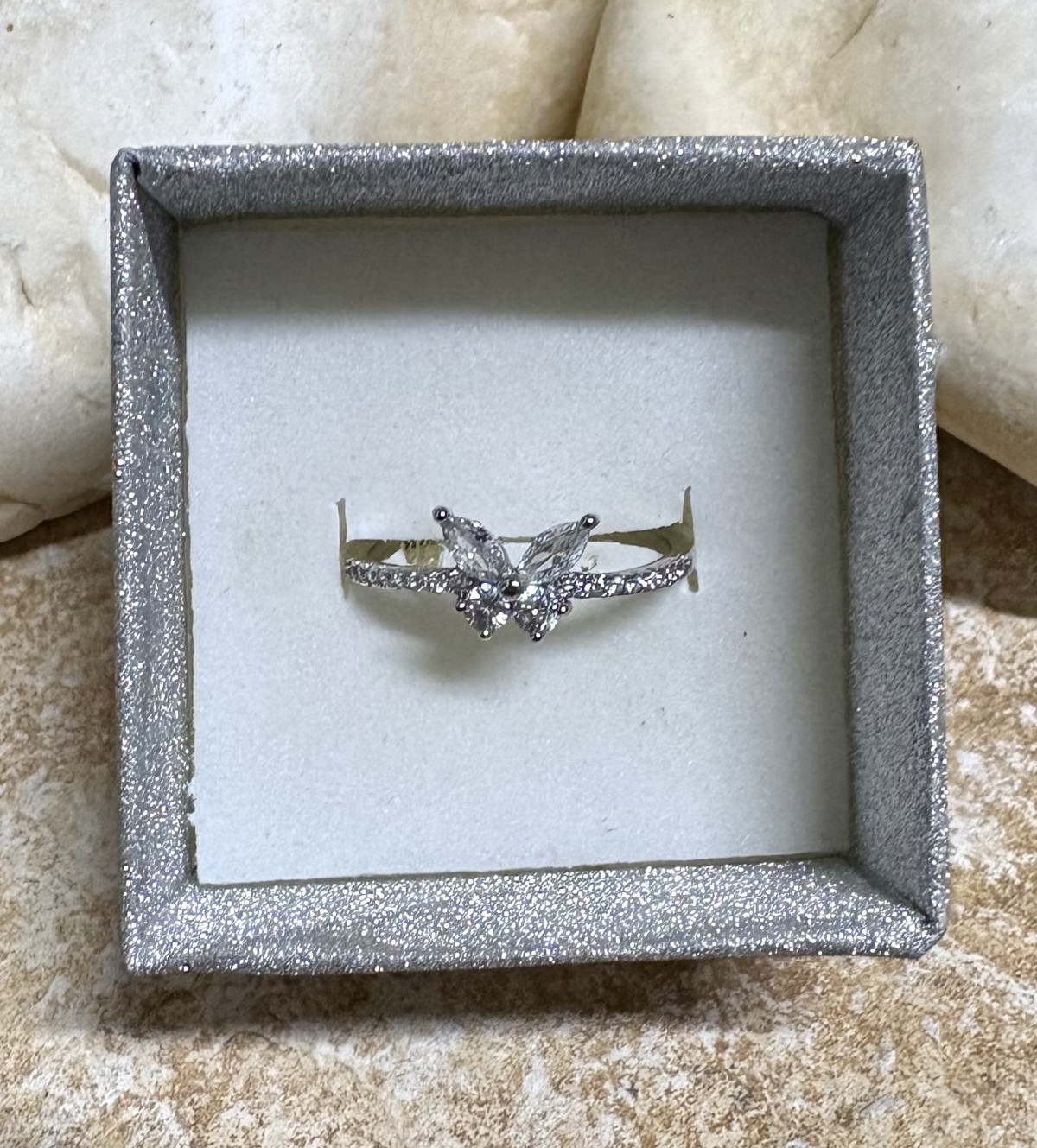 טבעת כסף 925 דגם פרפר משובץ.