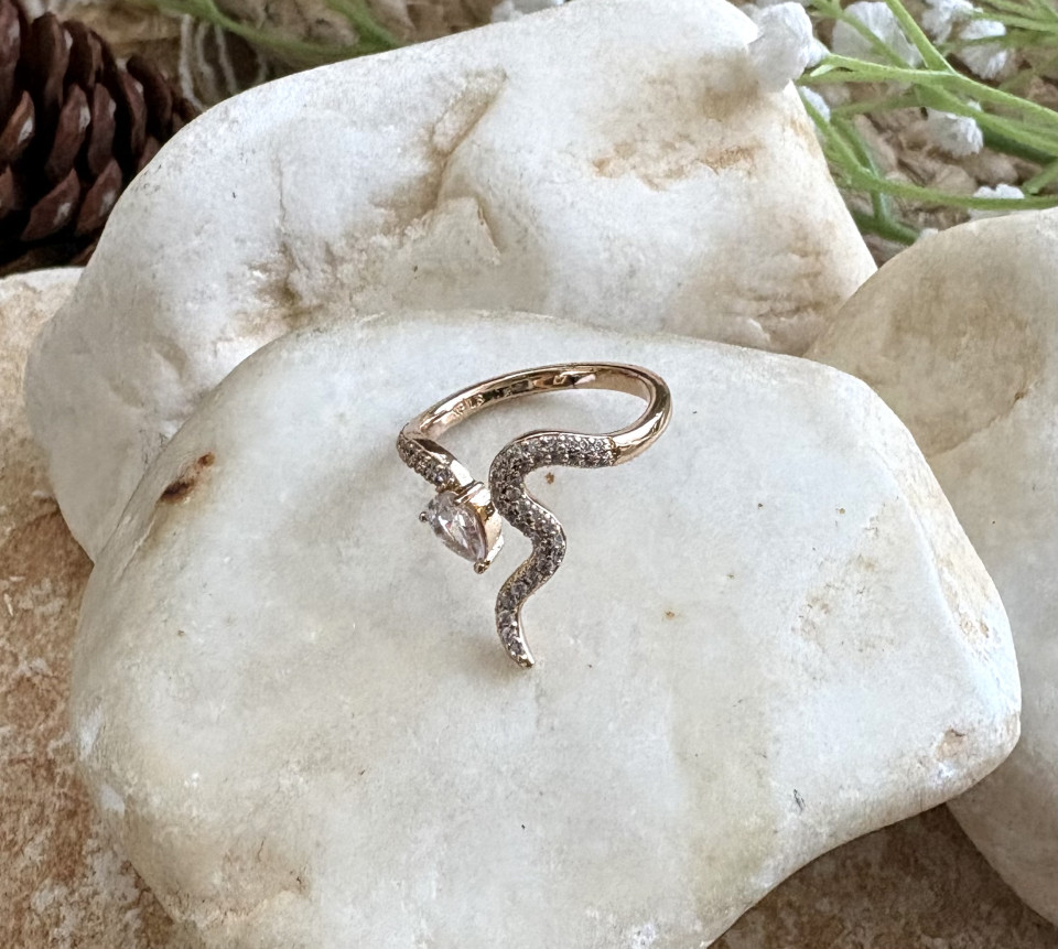טבעת רוזגולד משובצת בזרקונים דגם נחש.