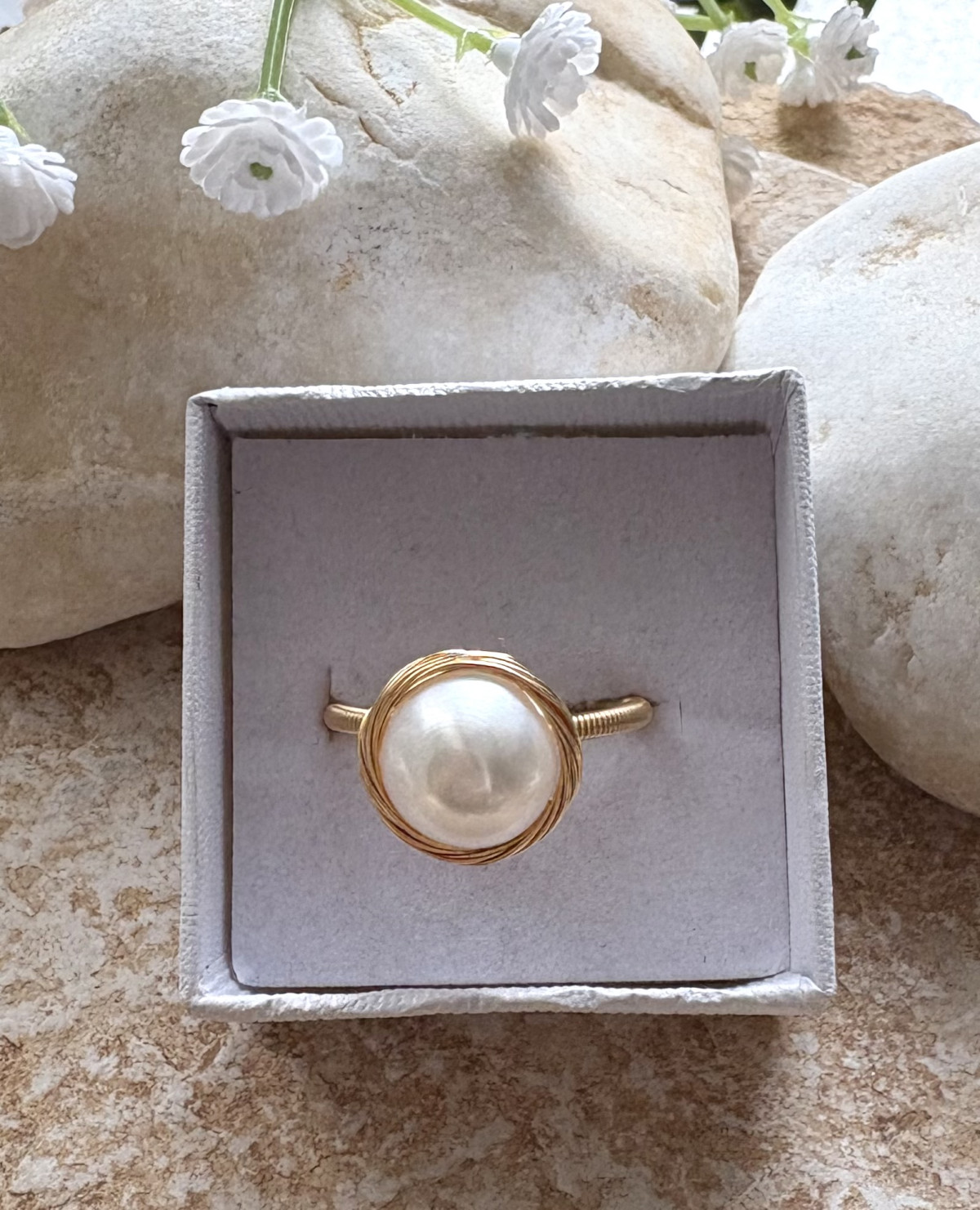 טבעת גולדפילד בשילוב אבן פנינה.