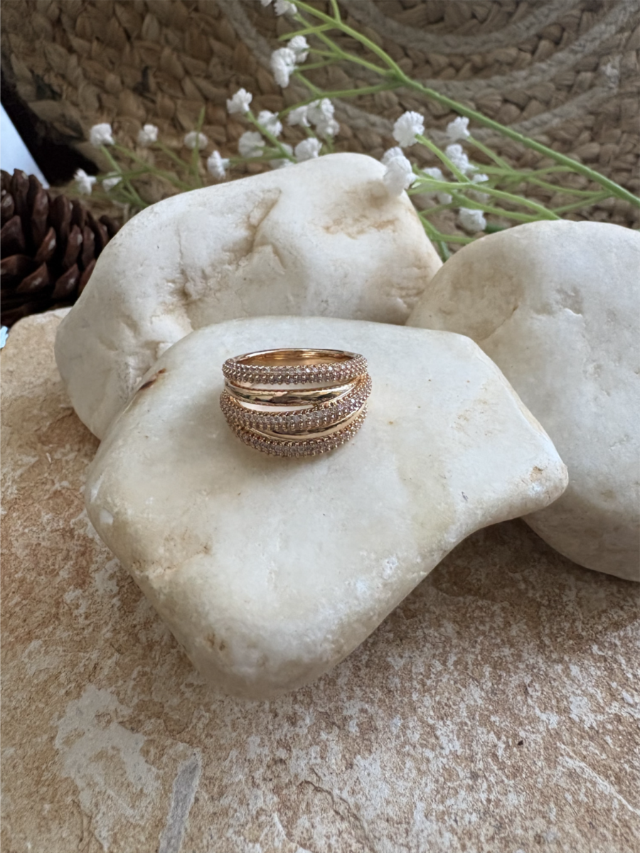טבעת רוזגולד בשיבוץ זרקונים.