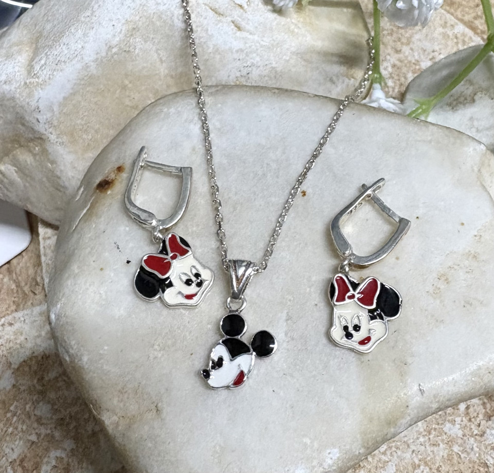 סט כסף 925 תליוני מיקי מאוס ומיני מאוס.
