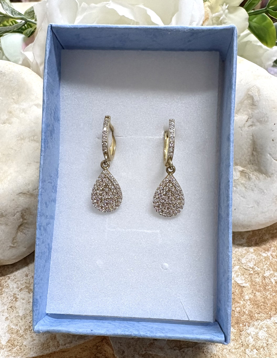 עגילי זהב 14K  תליון  טיפה בשיבוץ זרקונים.