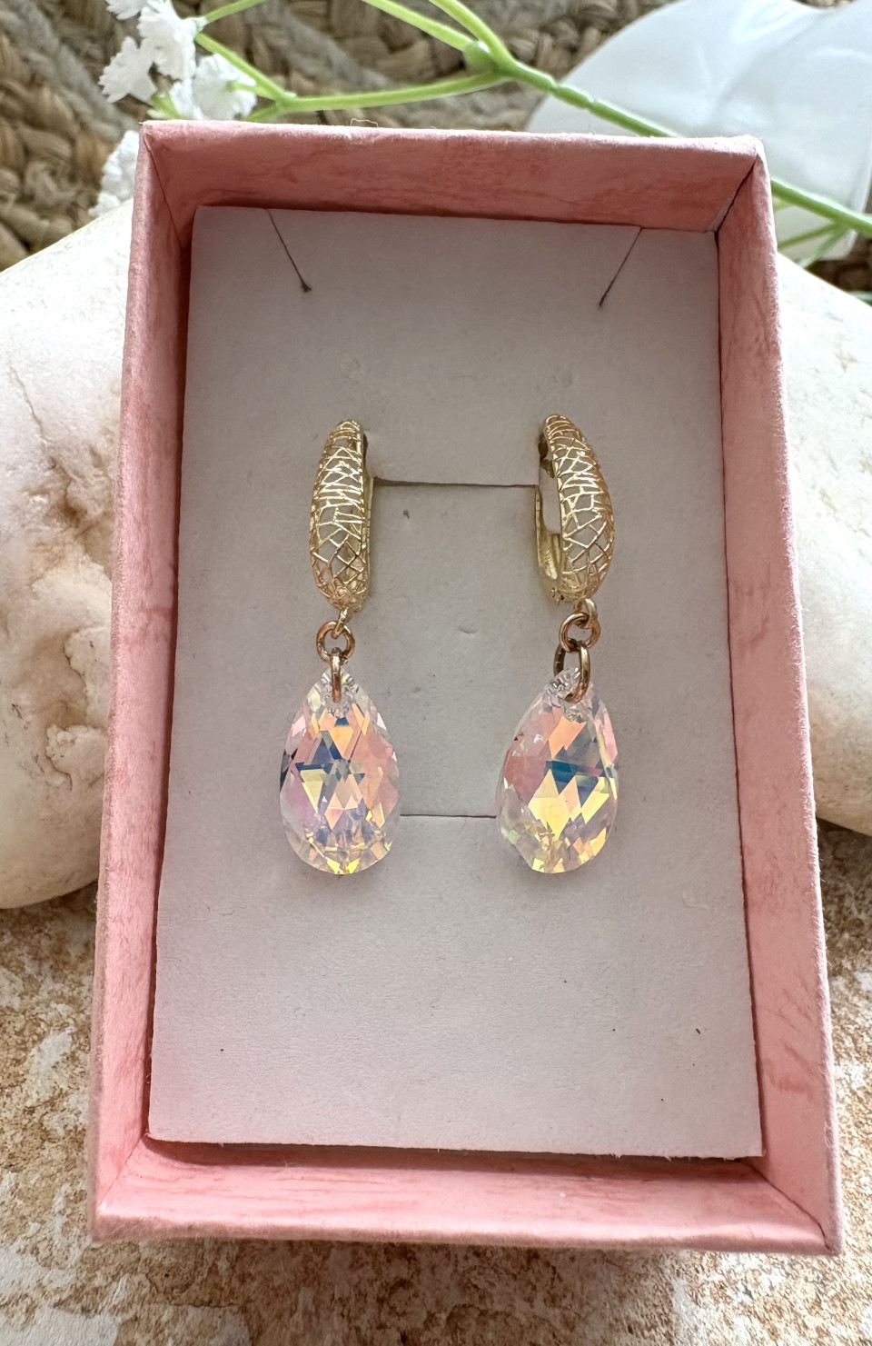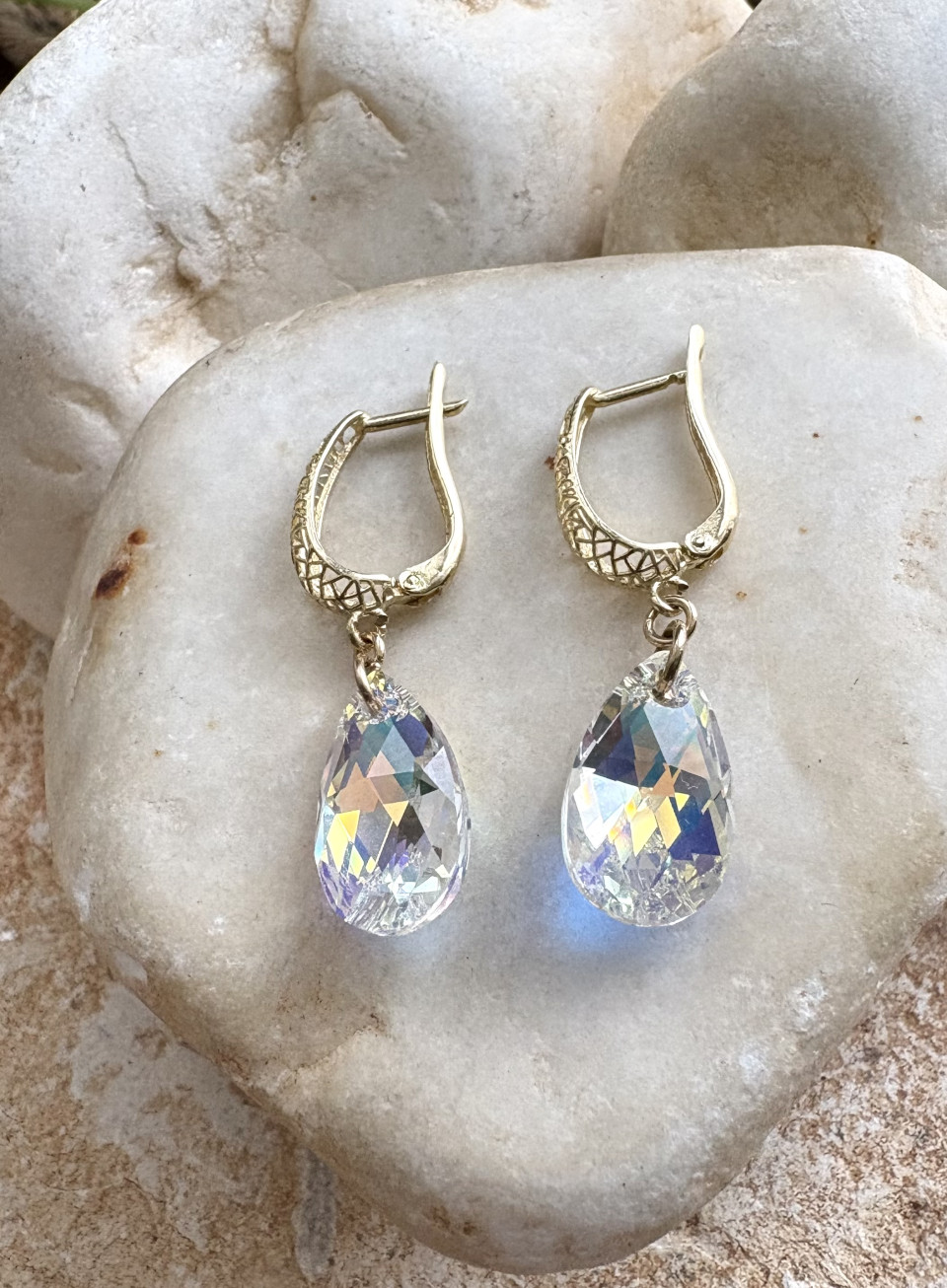 עגילי זהב 14K תליון טיפה סברובסקי