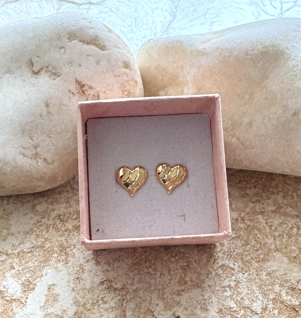 עגילי זהב 18K לב בחריטת לייזר פסים.