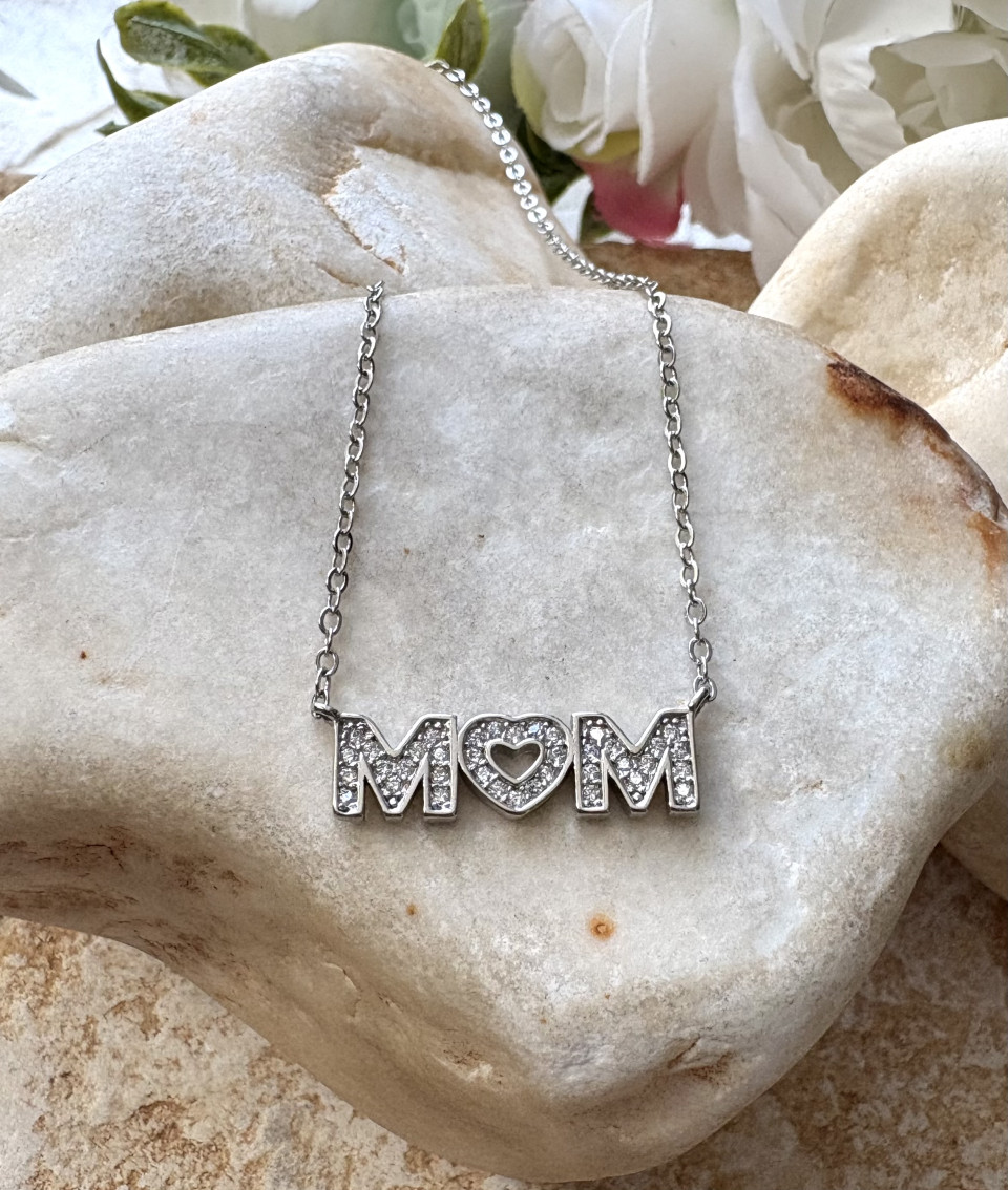 שרשראות MOM מכסף 925 בשילוב לב באמצע משובצת.