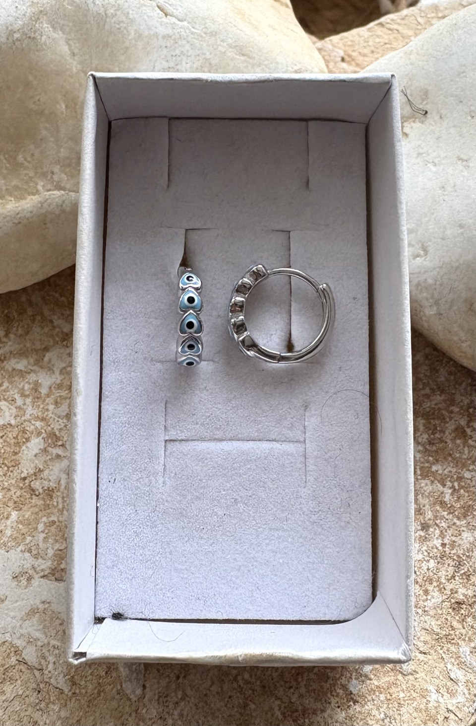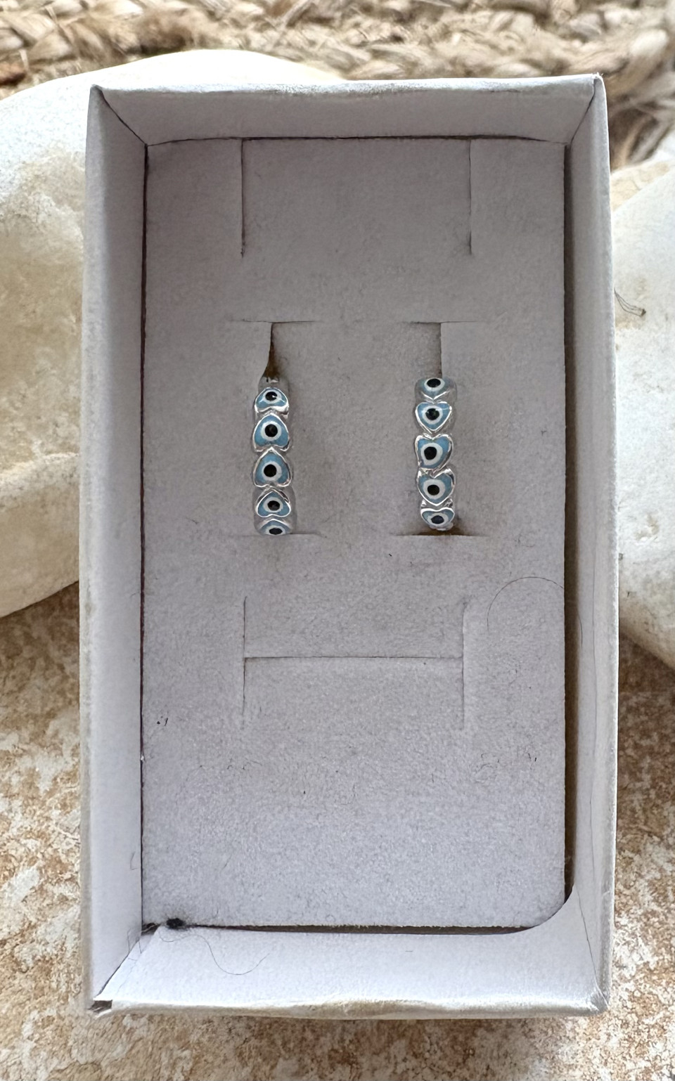 עגילי חישוק כסף 925 דגם לבבות עיניים.