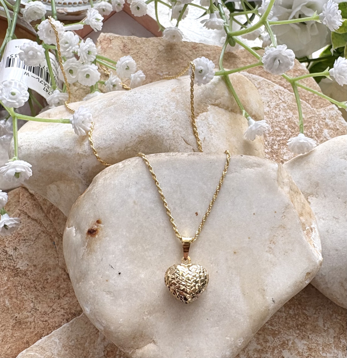 שרשרת זהב 18K תליון לב מנופח 18K לב מנופח בחריטת לייזר