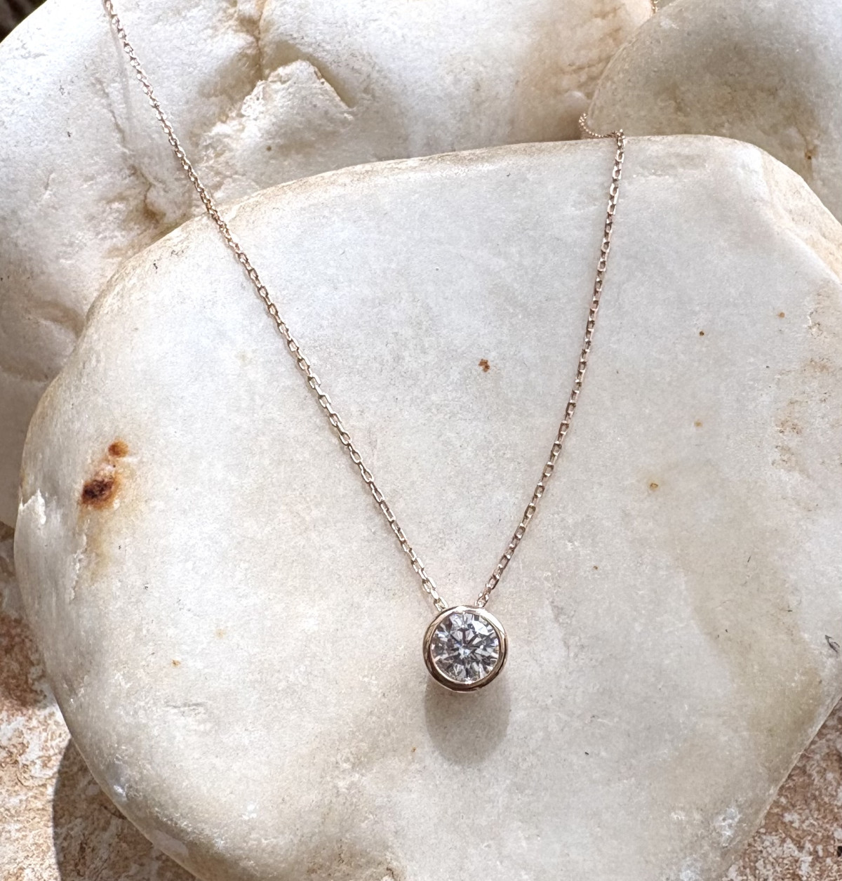 שרשרת זהב אדום 14K עם תליון בשיבוץ זרקון.