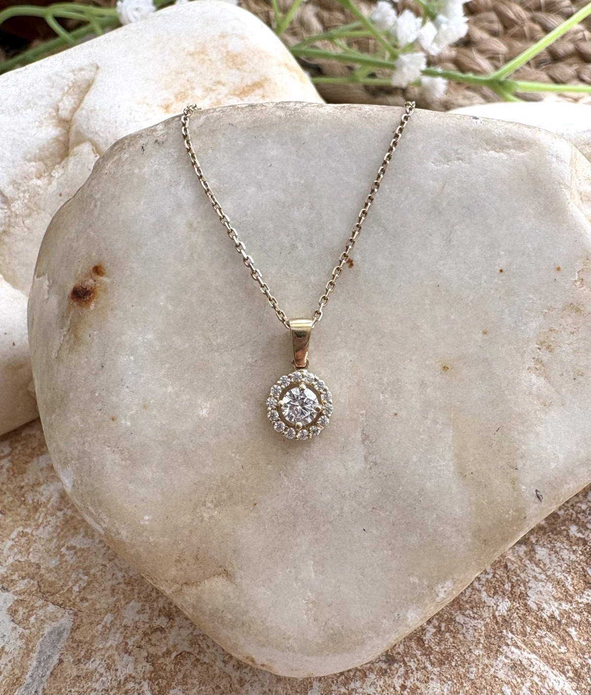 שרשרת זהב 14K עם תליון משובץ בזרקונים (סוליטר).  שרשרת עדינה ויפה.