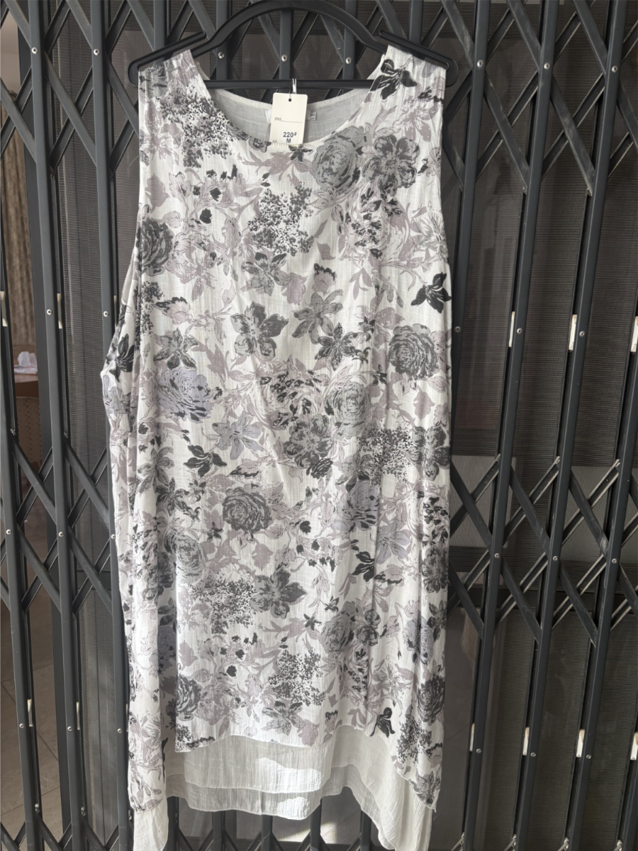 שמלת סרפן  עם תחתית לבנה. גוונים שחור לבן פרחים.