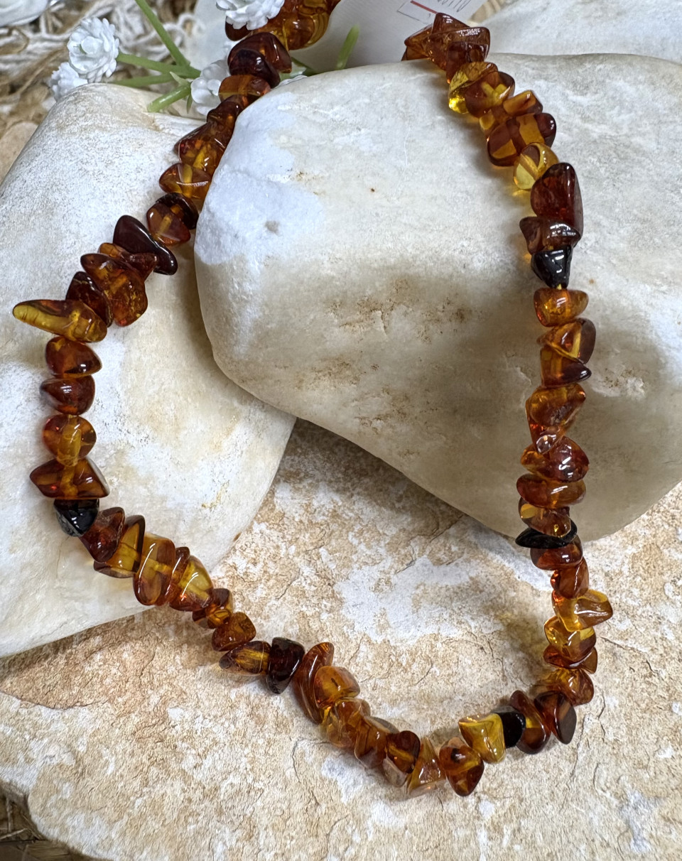 שרשרת אמבר,תסייע  בכאבי צמיחת שיניים,  דלקות שונות כמו אוזניים, דלקות פרקים, דלקות גרון,  חיזוק מערכת החיסון,  תחושת רוגע שלווה, יש הטוענים שענבר גורם לשינה נינוחה יותר,  איזון בלוטת התריס,  הקלה בכאבי ראש ומיגרנות.