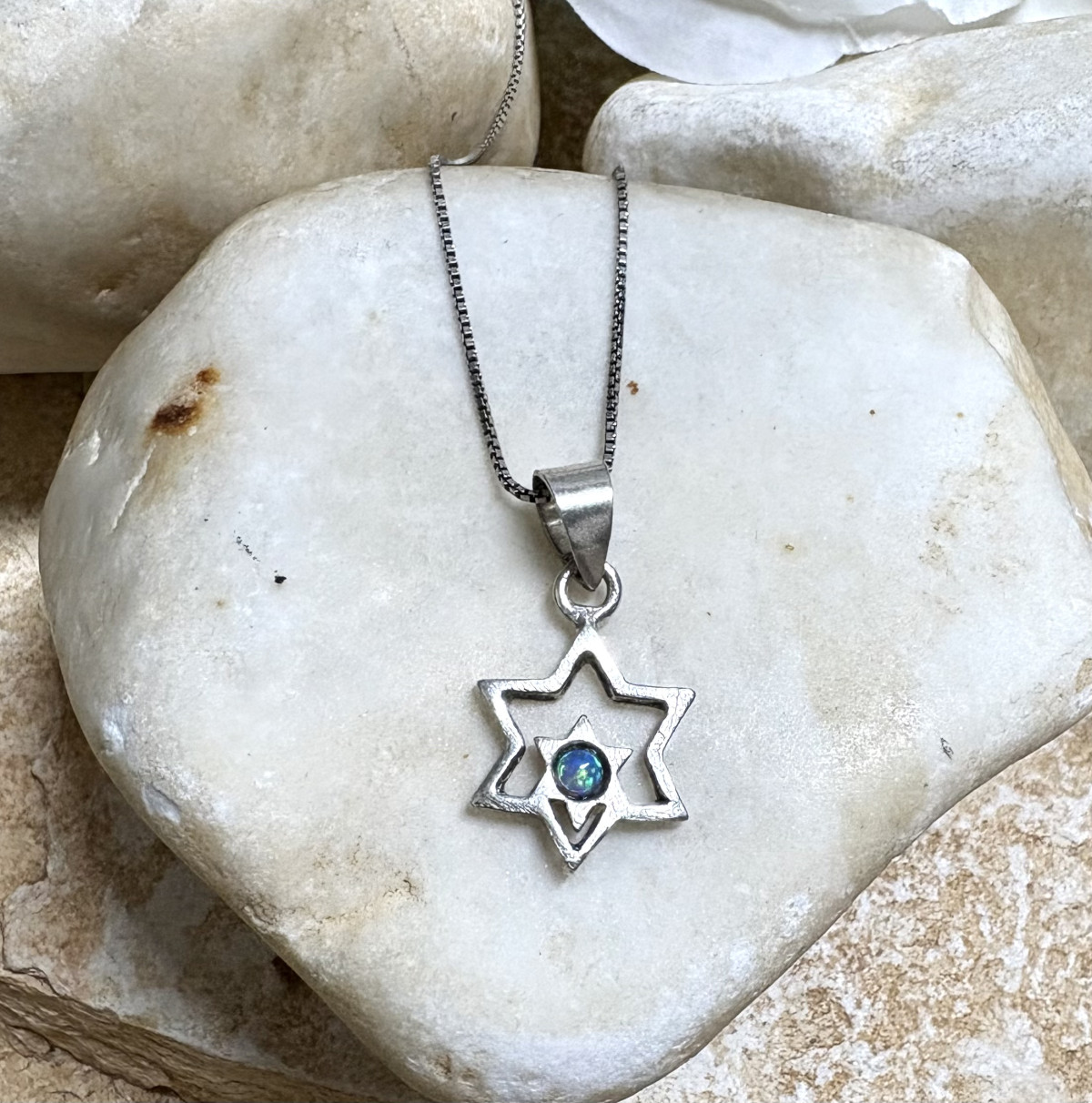 שרשרת כסף 925 מגן דוד בשיבוץ אופל