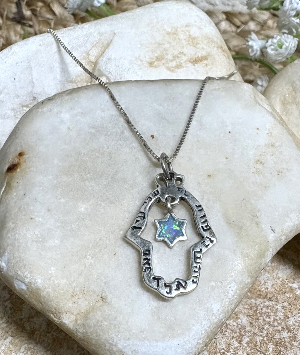 שרשרת כסף 925 חמסה עם תליון מגן דוד בשיבוץ אופל