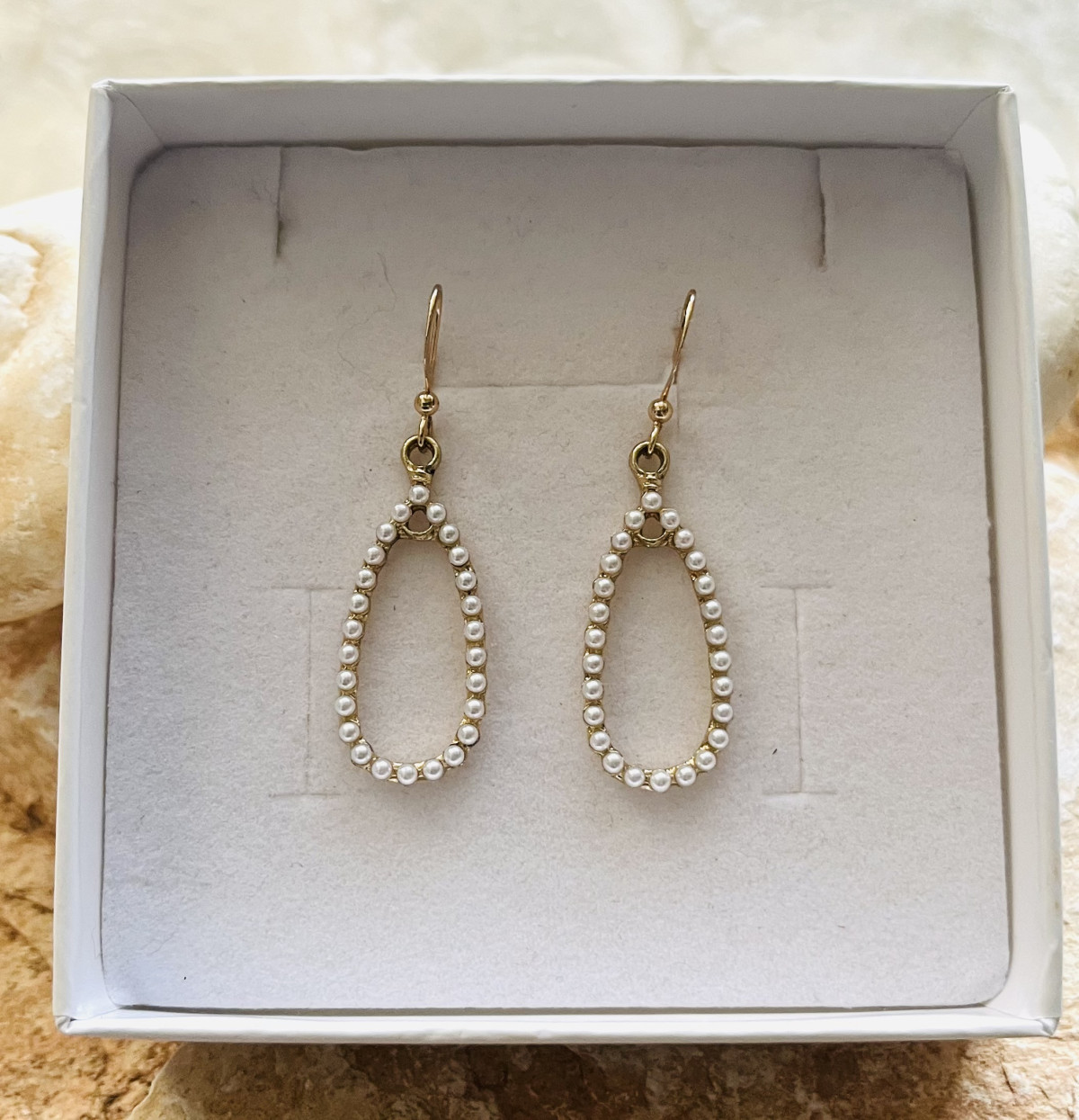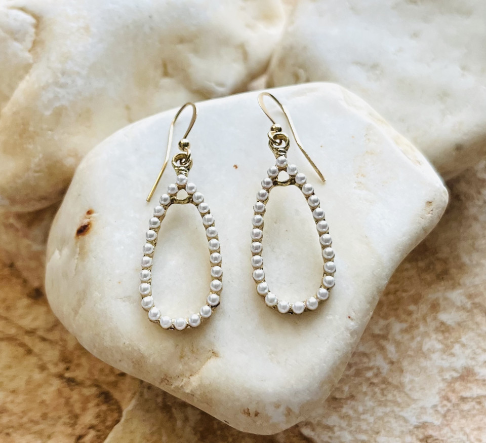 עגילי גולדפילד בשיבוץ חרוזי פנינה.