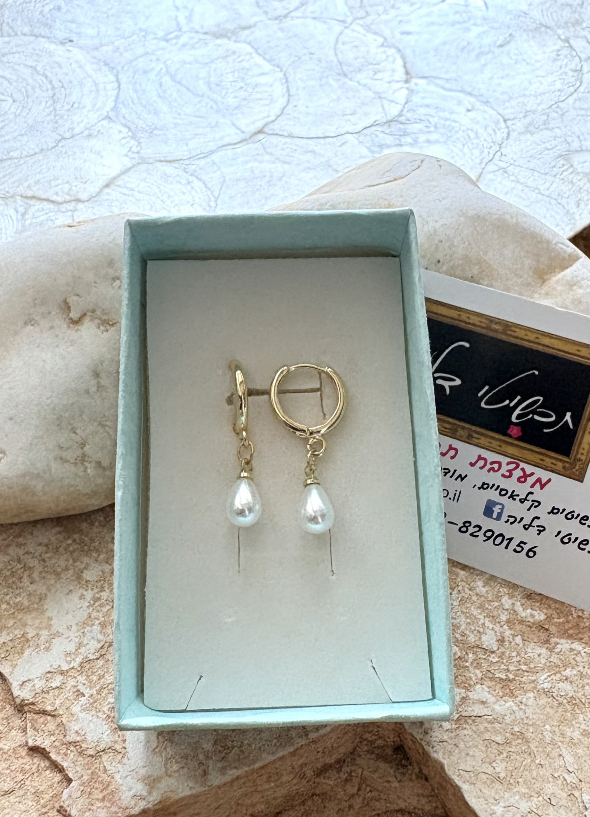 עגילי גולדפילד חישוק  אבן פנינת מיורקה.