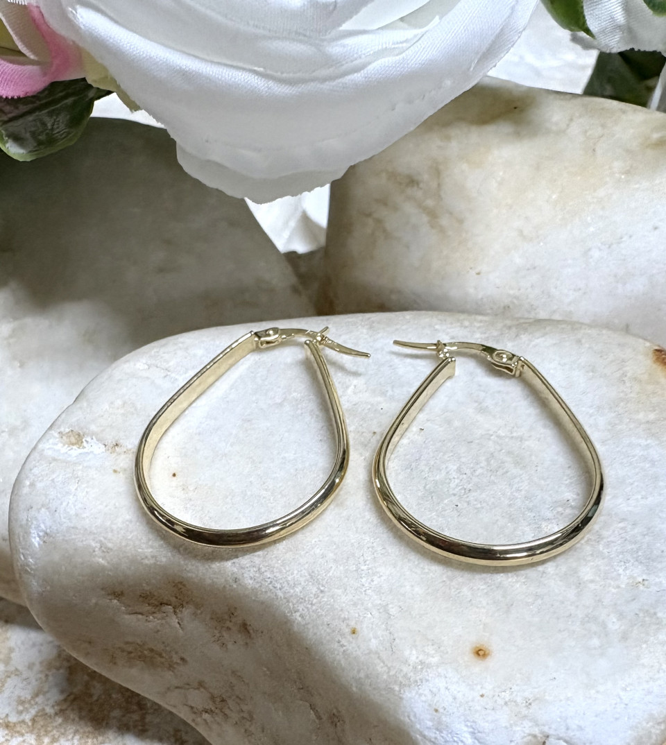 עגילי  זהב 14K חישוק אובלי. תוצרת איטליה.