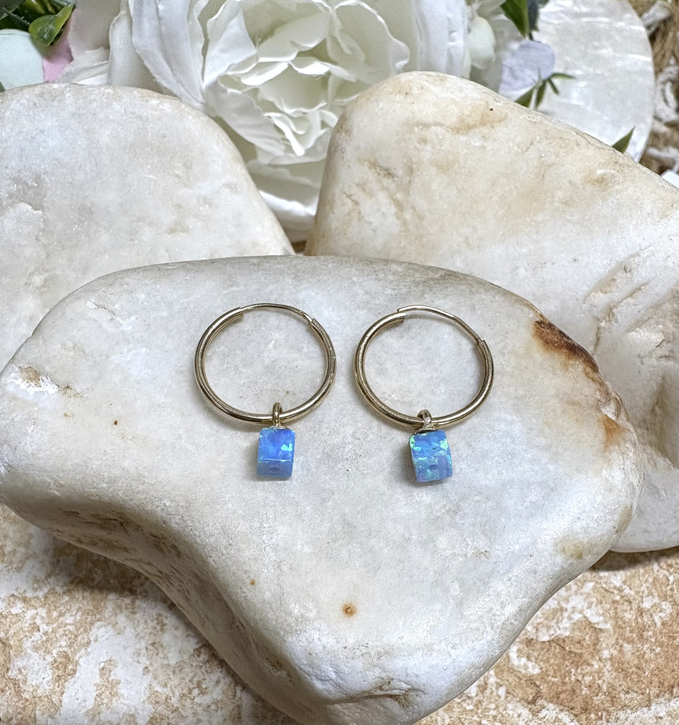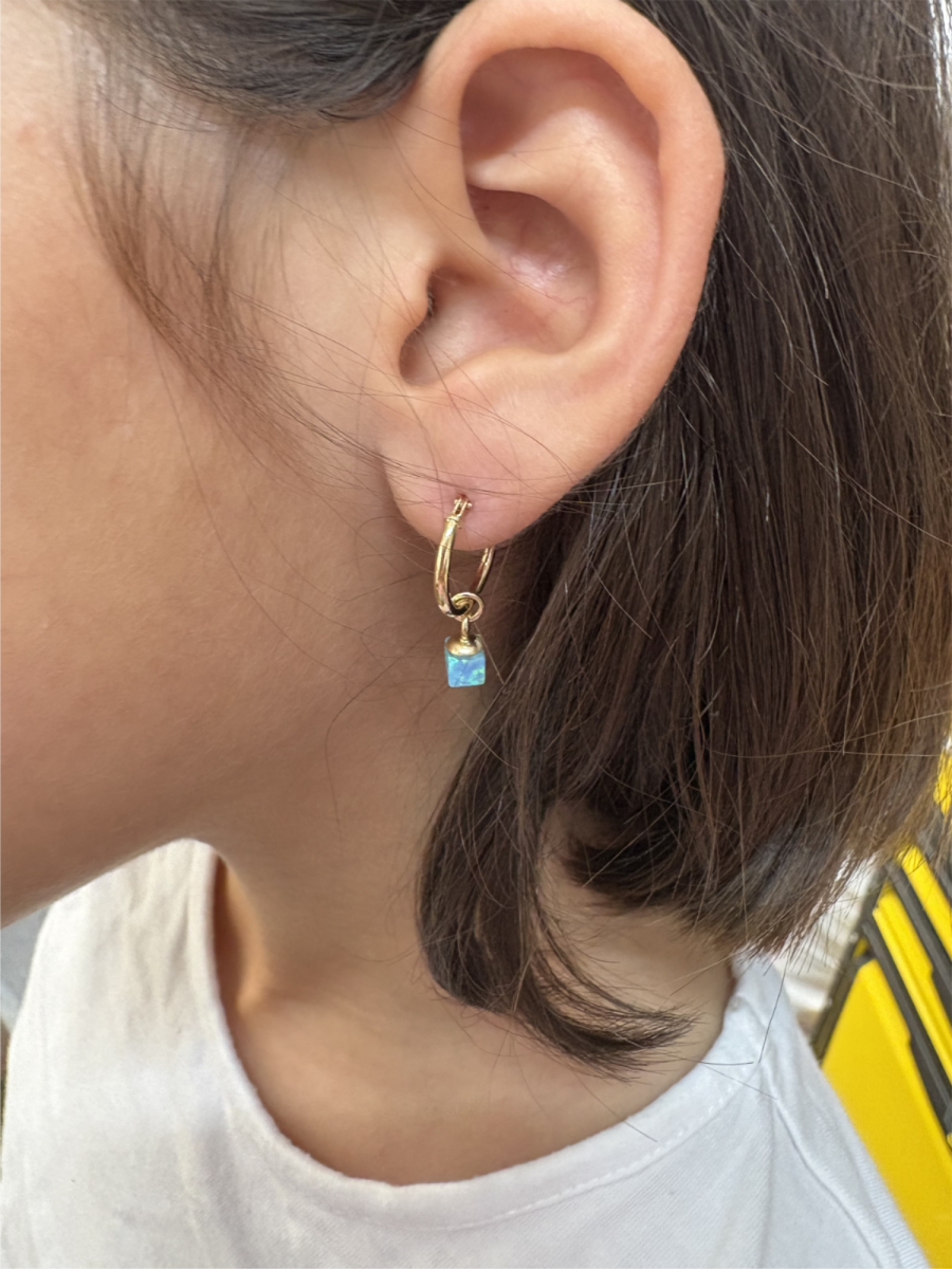 עגילי חישוק זהב 14K עם תליון אופל נופל.