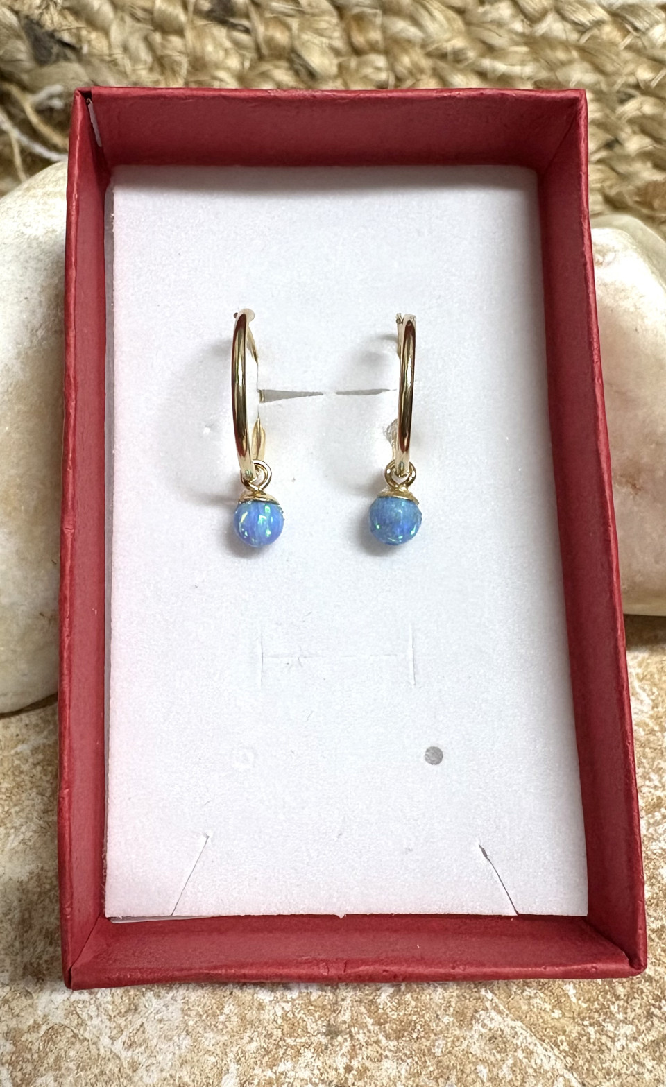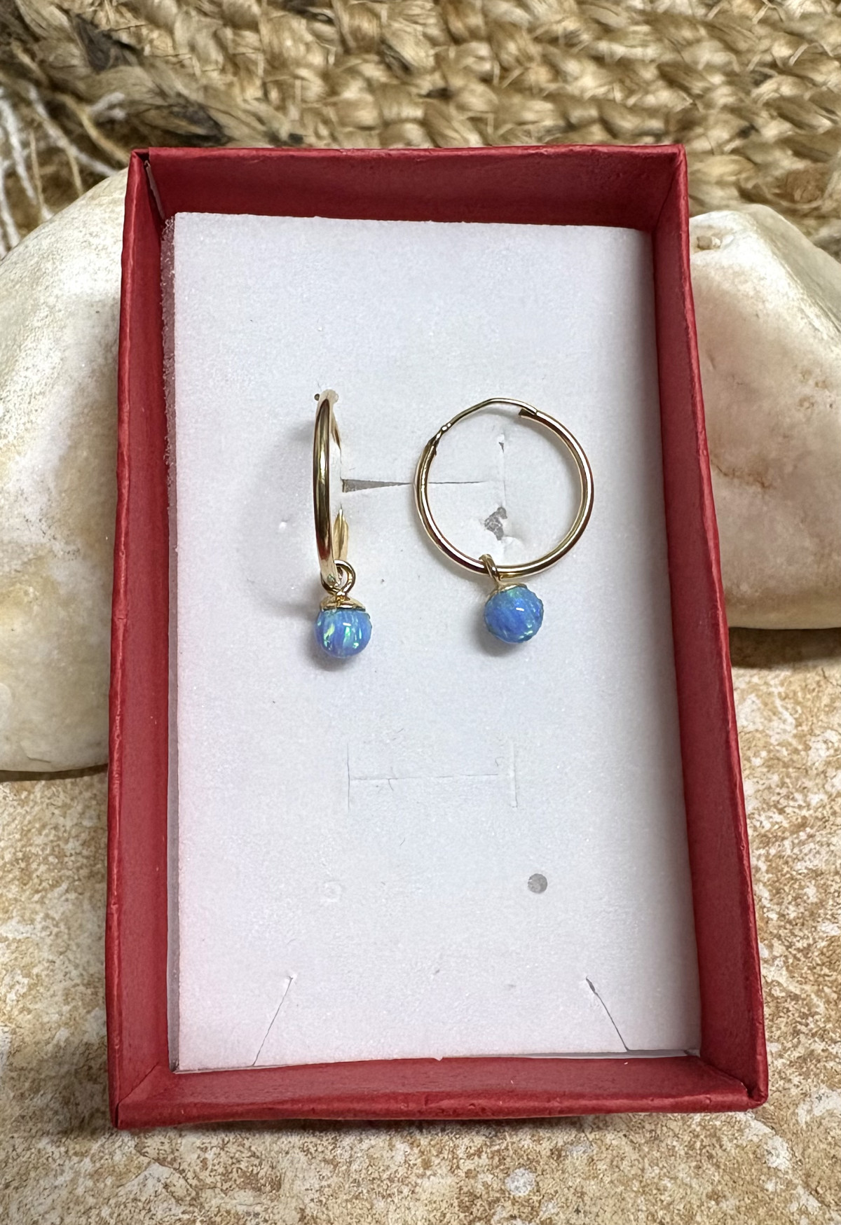 עגילי חישוק זהב 14K עם תליון אופל  נופל (כדור).