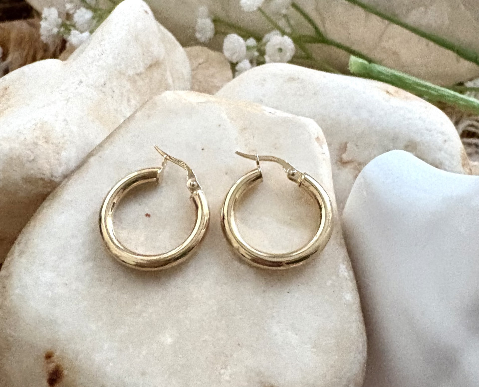 עגילי חישוק זהב 14K דגם חלק. סגירת מנוף.