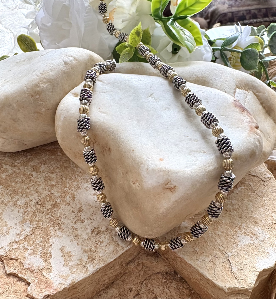 שרשרת כסף 925 עם חרוזי כסף וזהב
