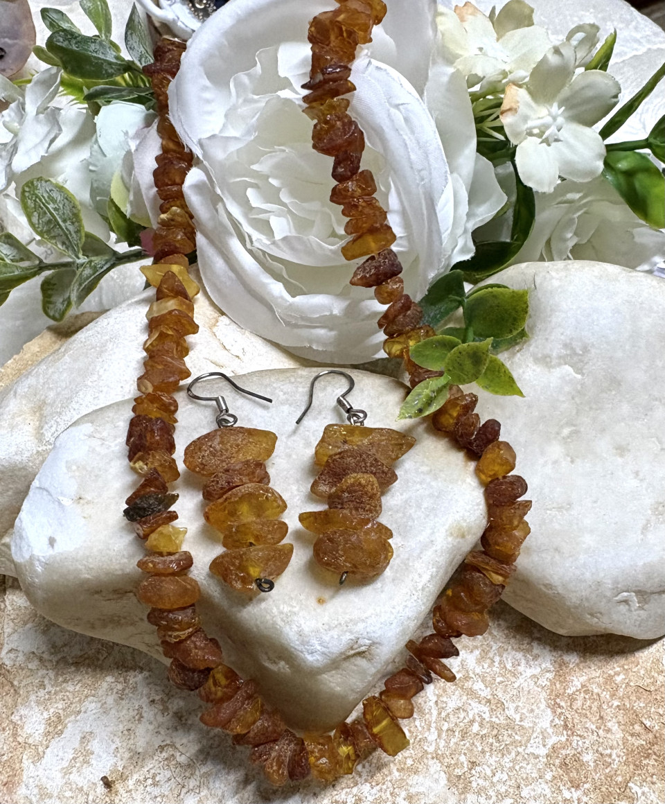 סט שרשרת ועגילים עם אבן אמבר/ענבר