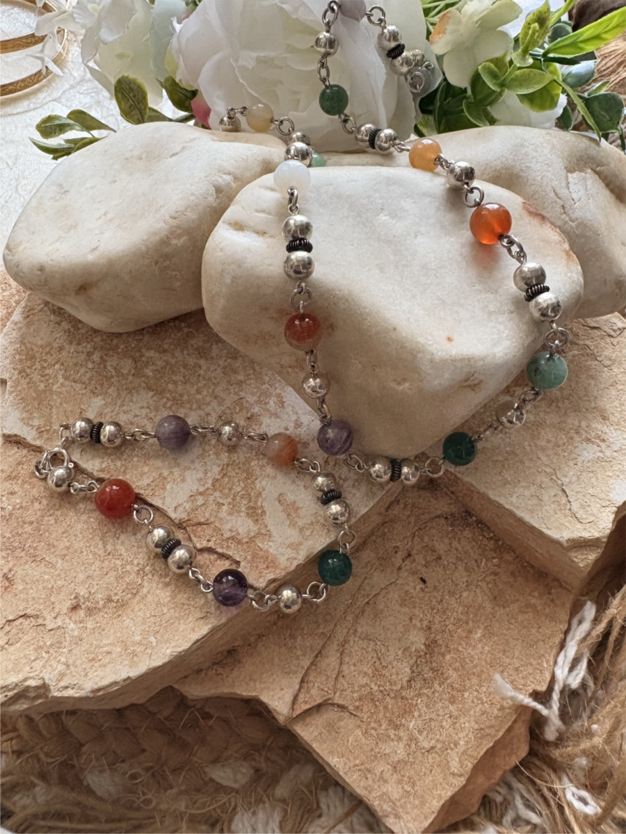 סט שרשרת כסף 925 עם כדורי כסף ואבני חן.