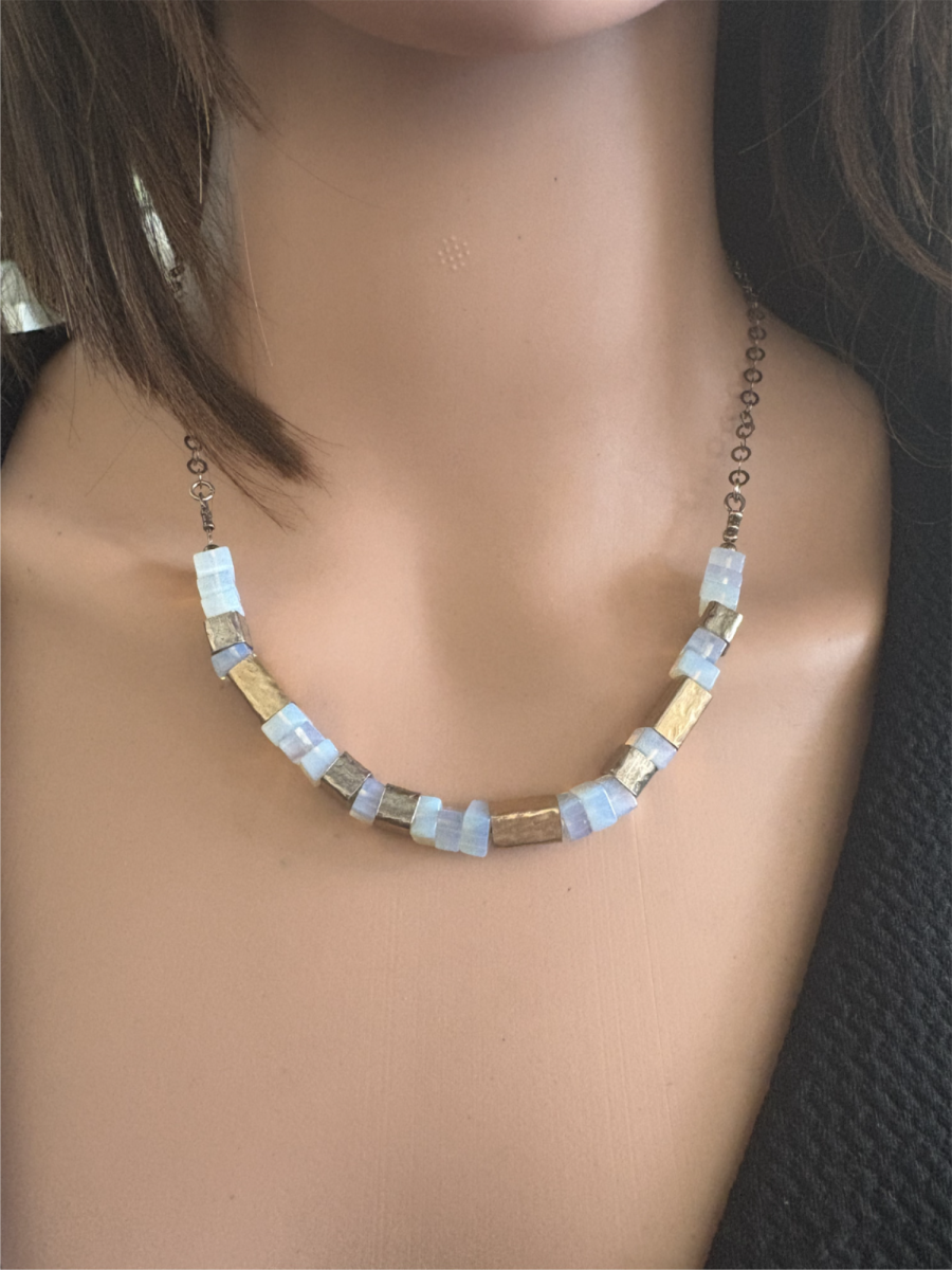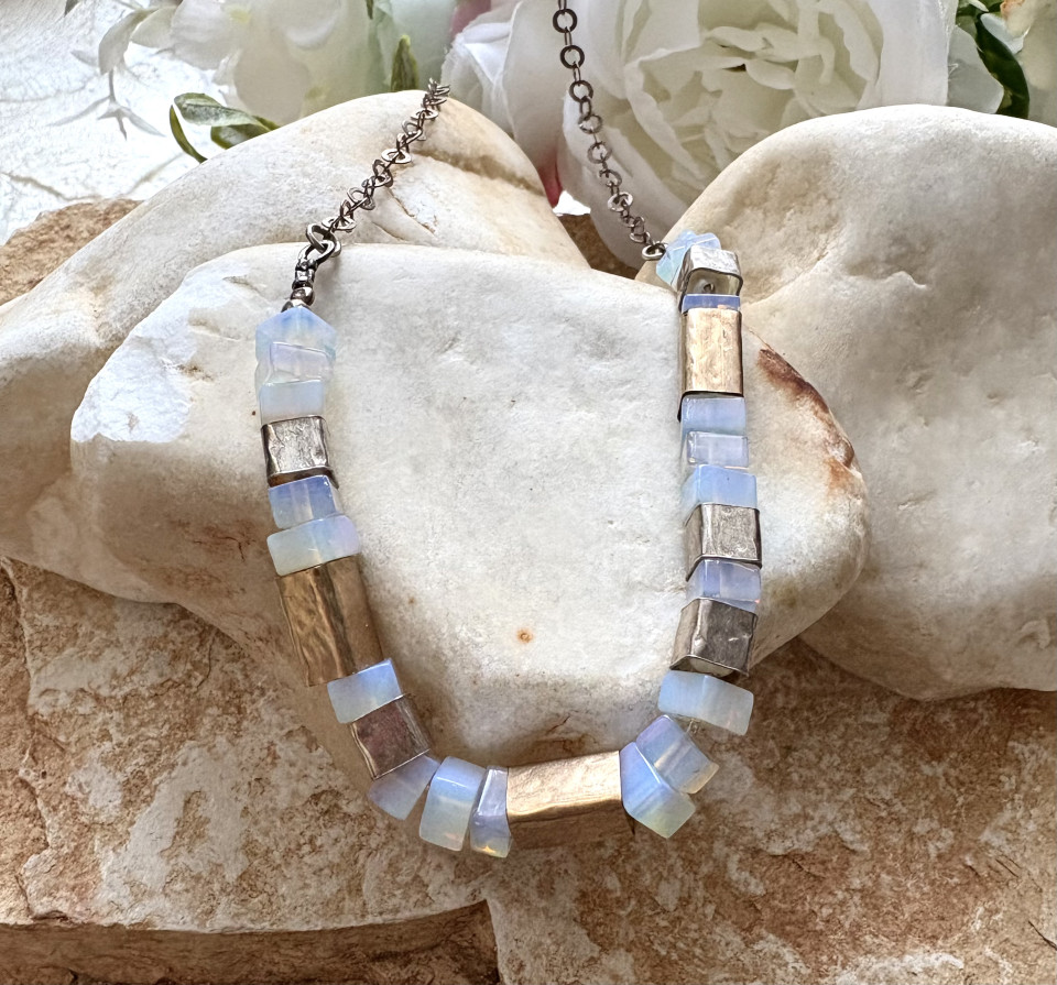 שרשרת כסף 925 עם אופליות ואלמנטים מגולדפילד.