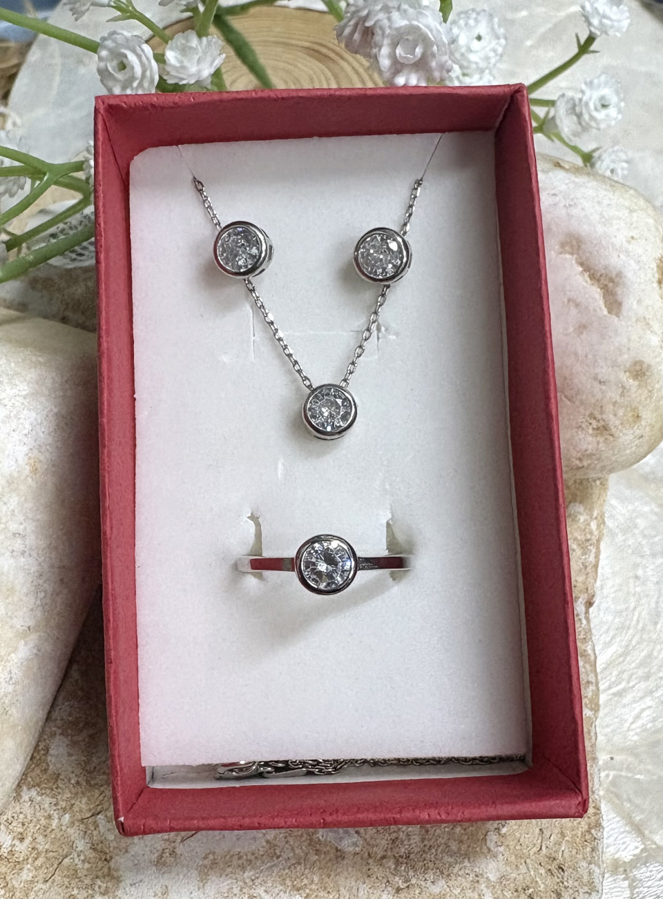 סט כסף 925 בשיבוץ זרקונים. עגילים צמודים.