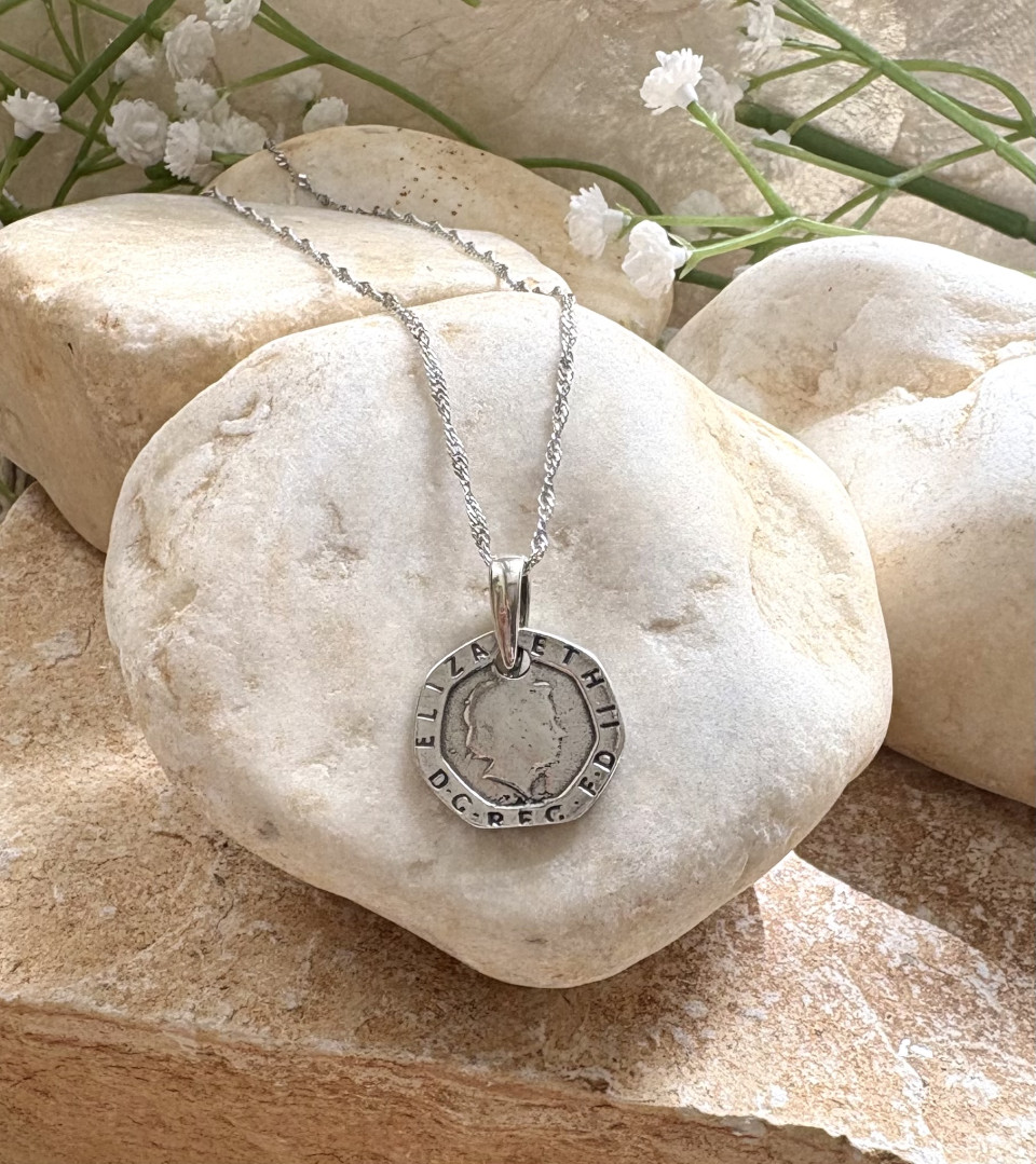 שרשרת כסף 925 תליון מטבע המלכה אליזבת.