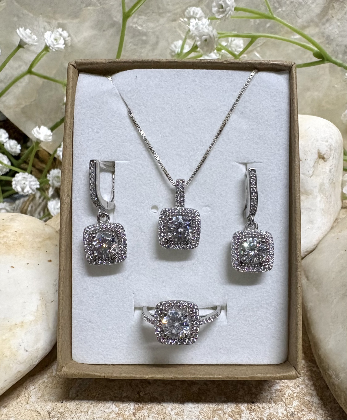 סט כסף 925 דגם סוליטר מרובע אבן מואסנייט