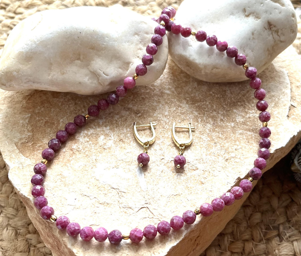 סט שרשרת ועגילים גולדפילד עם אבני רובי